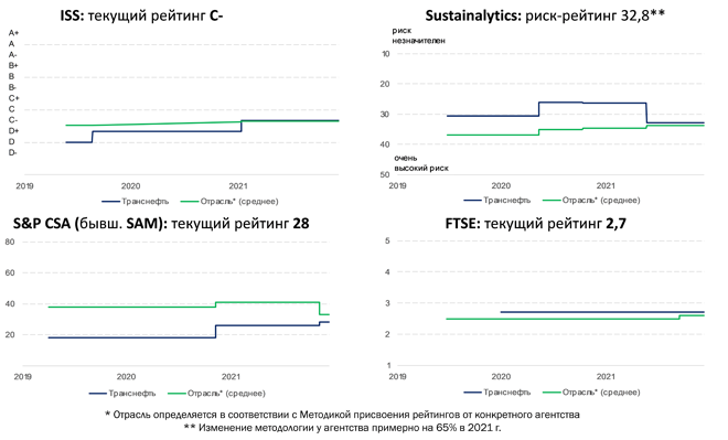 В отчётном году деятельность Группы «Транснефть» подробно анализировалась наиболее крупными и авторитетными агентствами, специализирующимися на изучении деятельности компаний в области экологии, социальной ответственности и корпоративного управления (ESG-агентствами).