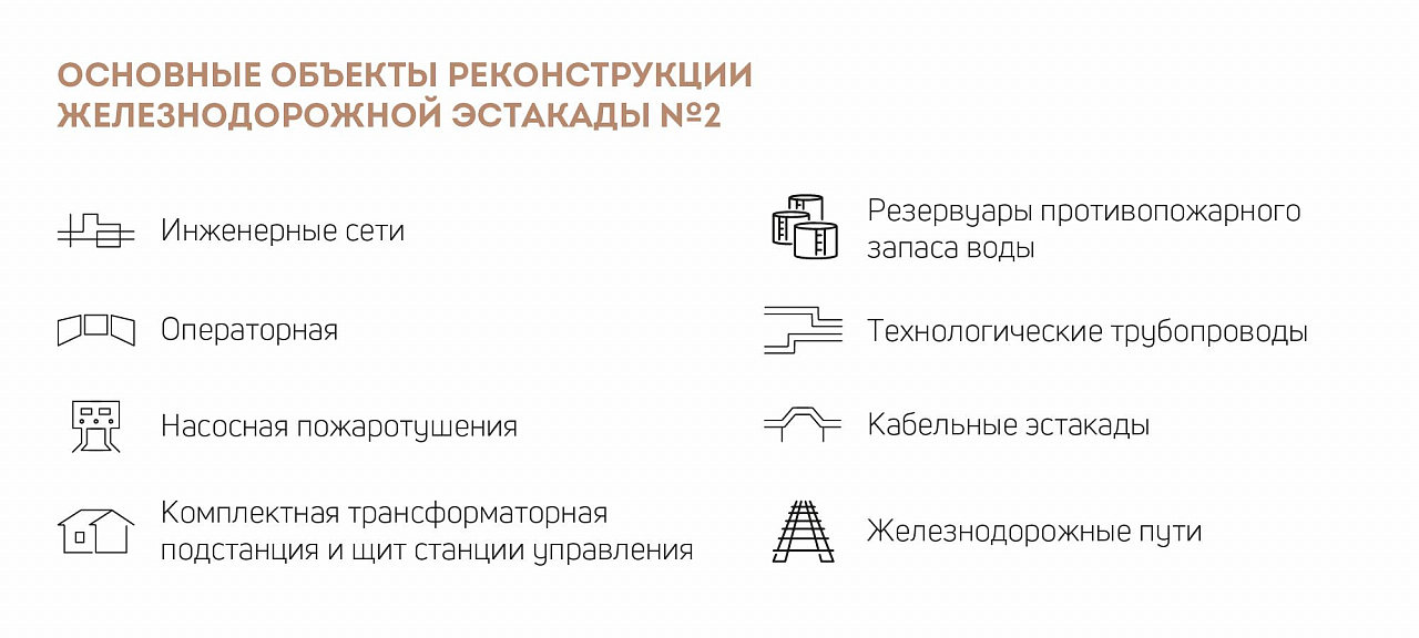 За время реконструкции значительно обновились энергетические объекты железнодорожной эстакады № 2, для обслуживания которой были возведены современная комплектная трансформаторная подстанция и щит станции управления.