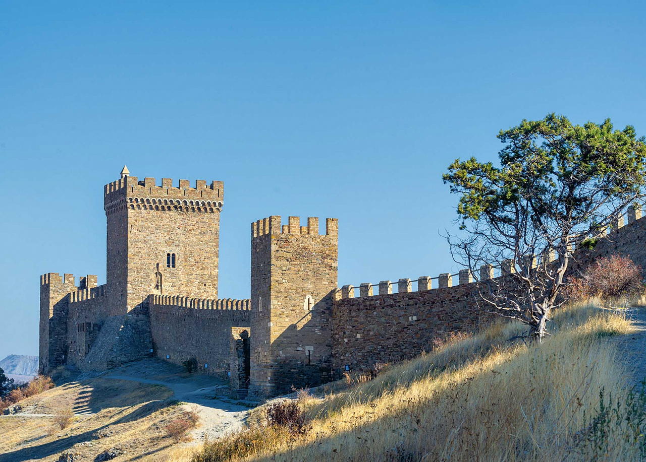 Заградительные стены из дикого камня. Оборонительная башня Константина, названная в честь первого римского императора, принявшего христианство. И башня Криско, на которой уже в XIV веке были установлены механические часы (в Москве такие появились только XVI веке). Эти величественные развалины представляют древнюю Каффу, позднее ставшую Феодосией, а когда-то — главный город генуэзской газарии — сети факторий итальянцев в Крыму.