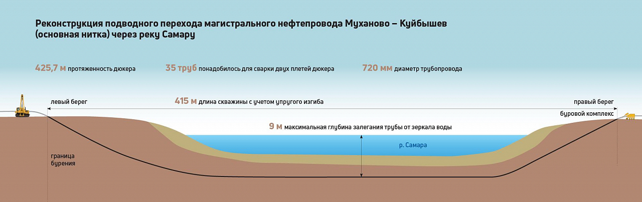 Работы по реконструкции основной нитки магистрального нефтепровода Муханово –Куйбышев через реку Самару развернулись в Кинельском районе Самарской области. Техническим заказчиком по объекту выступает ООО «Транснефть — ТСД», а в качестве генеральной подрядной организации привлечено ООО «НефтеГазоТехнологии». Реконструкция выполняется с сентября 2024 года, без остановки транспортировки нефти. В марте текущего года силами строительной организации завершено протаскивание дюкера подводного перехода через реку.