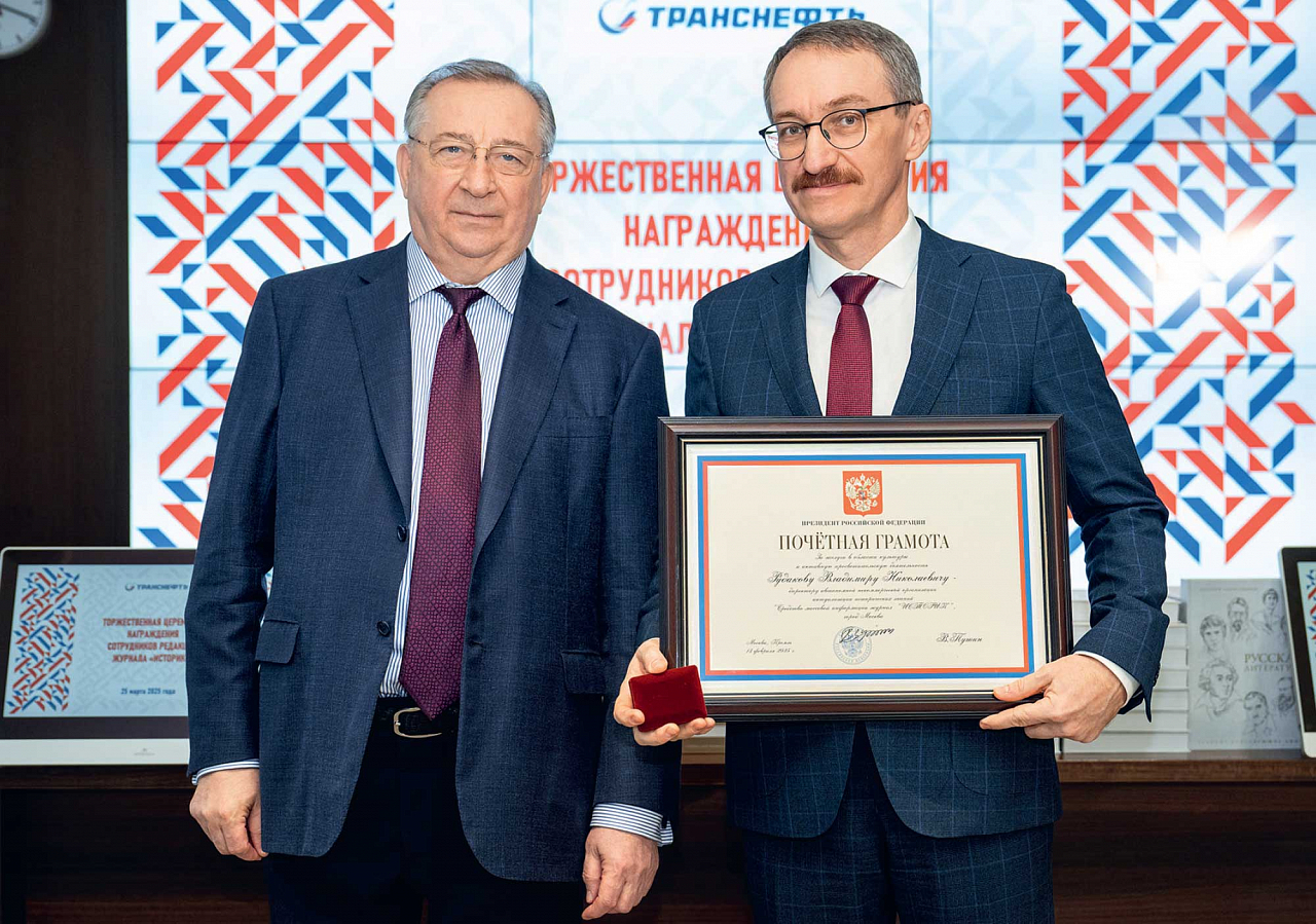 Награды сотрудникам редакции вручил президент ПАО «Транснефть» Николай Токарев. Компания много лет является партнером журнала «Историк» и поддерживает издание. За прошедшие годы при поддержке «Транснефти» было подготовлено несколько крупных изданий и публикаций на важные исторические темы. Среди них — спецвыпуски журнала и отдельные книги об истории Крыма, революции, книга к 60‑летию нефтепровода «Дружба» и многое другое.