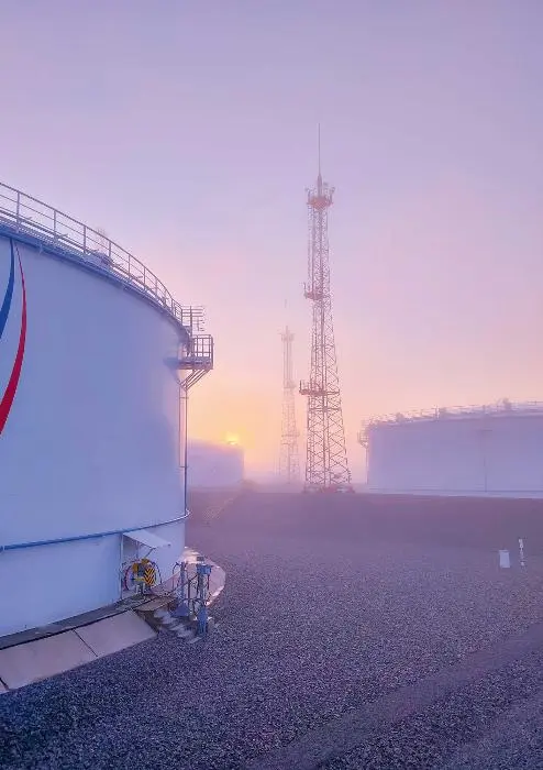 Воскресное утро. До конца рабочей смены 40 минут. Солнце лениво поднимается над тайгой, окрашивая укутанные туманной дымкой резервуары в пастельные тона. Делаешь снимок, закрываешь глаза. Тишину прерывают только птичьи голоса. Утренняя безмятежность.