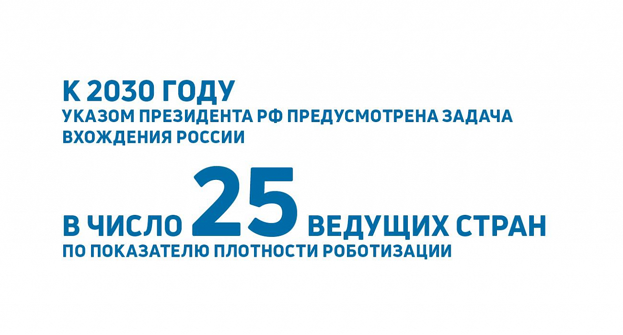 Указом Президента РФ № 309 предусмотрена задача по вхождению России в число 25 ведущих стран по показателю плотности роботизации к 2030 году. В настоящее время Минэнерго России прорабатывает создание механизмов решения поставленной задачи в рамках топливно-энергетического комплекса. Один из рассматриваемых вариантов — это консолидация организаций по этому направлению в рамках ИЦК «Нефтегаз, нефтехимия и недропользование» или других отраслевых сообществ.