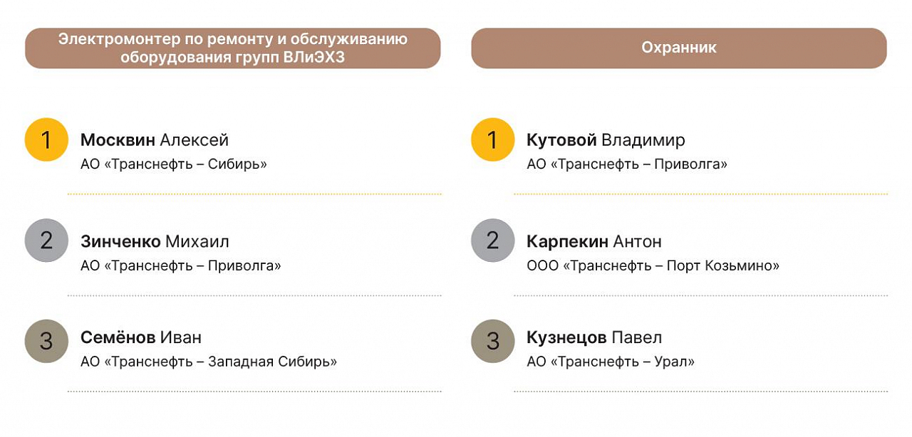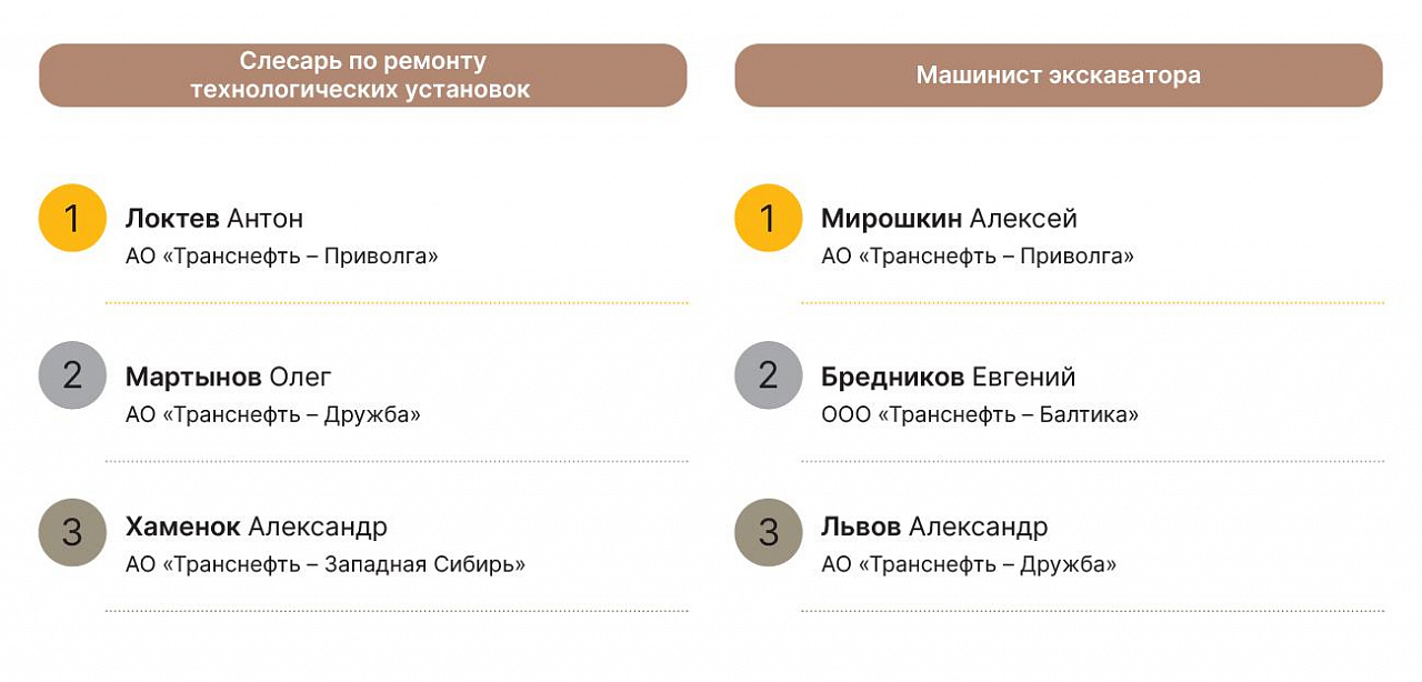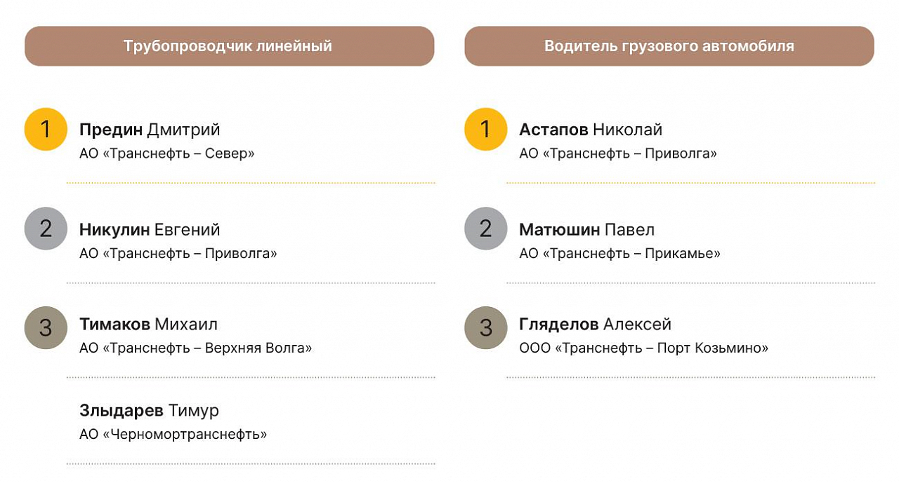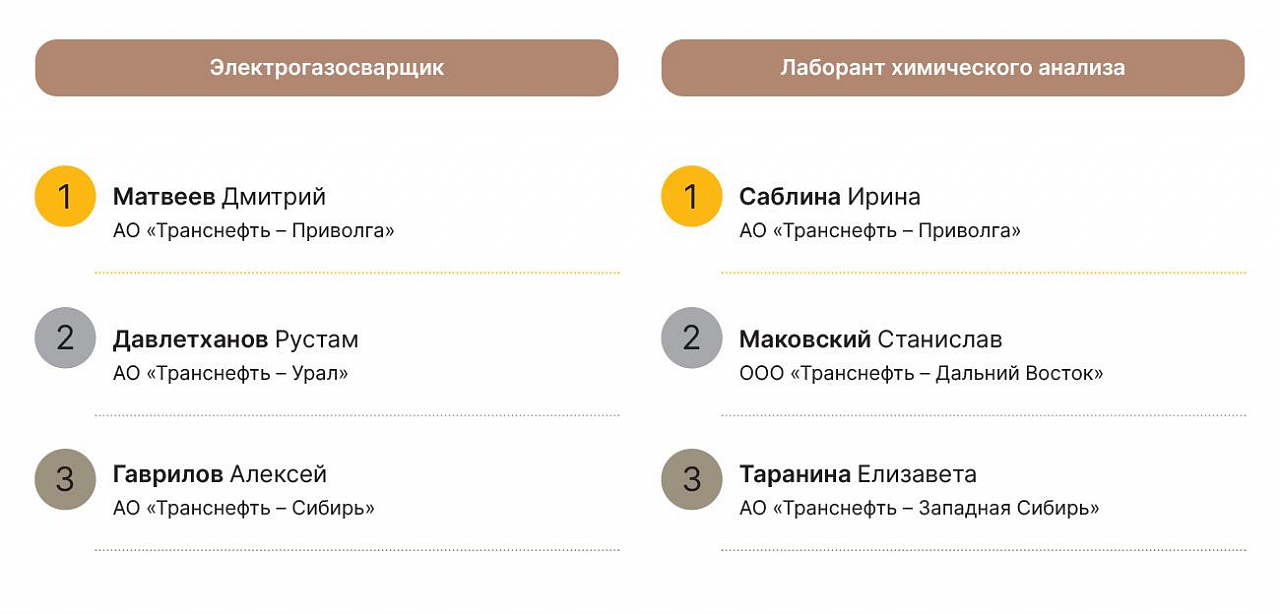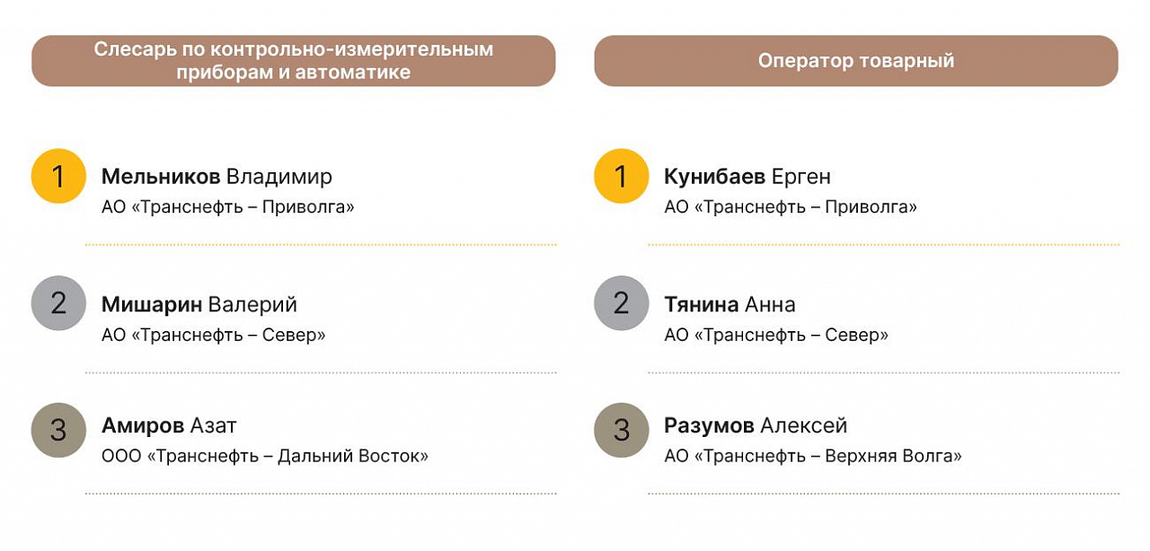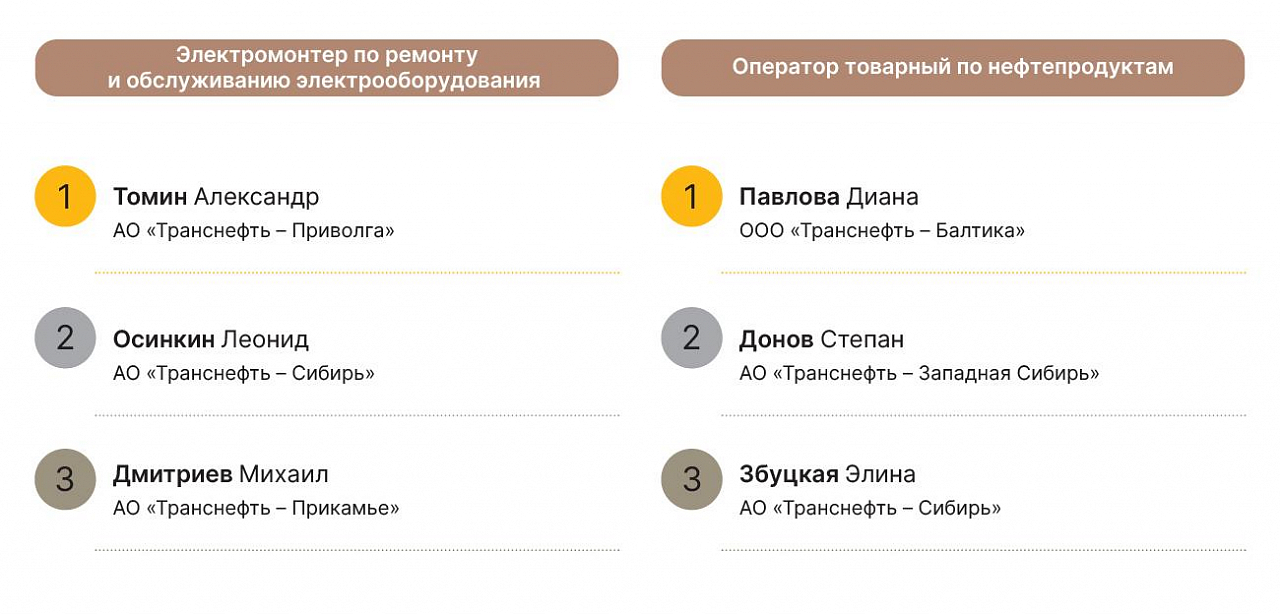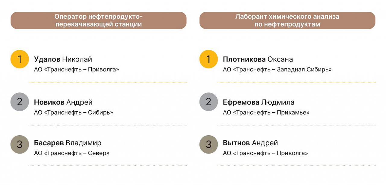 Упор на молодых — тенденция конкурса «Лучшего по профессии». Как отметил вице-президент ПАО «Транснефть» Борис Король, работники могут участвовать в конкурсе не более двух раз подряд, чтобы дать возможность раскрыться коллегам. А главная задача состязаний — чтобы, возвращаясь на рабочие места, мастера передавали знания и опыт.