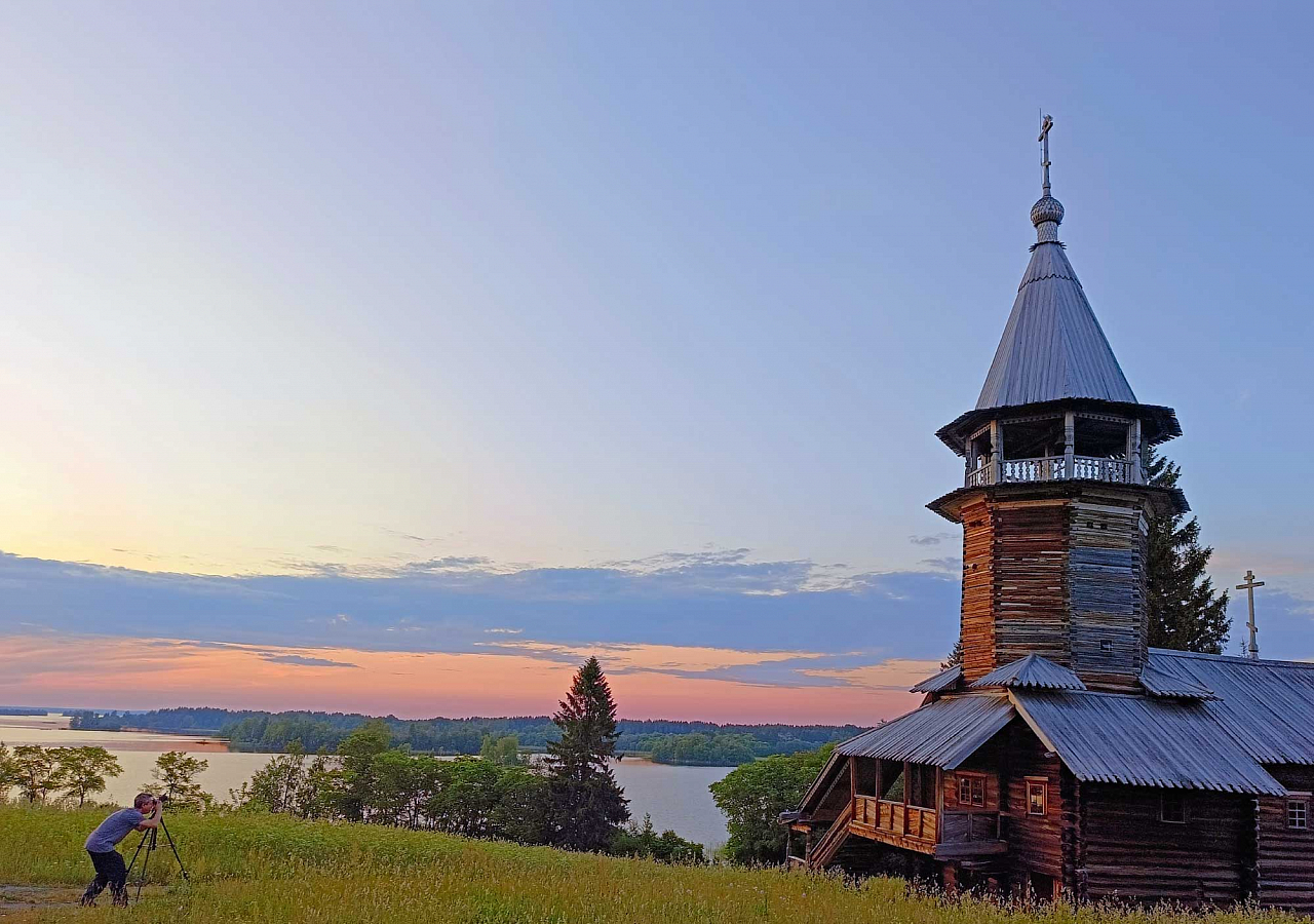По легенде, плотник Нестор, в 1714 году завершив работу над церковью Преображения Господня на острове Кижи, закинул топор в Онежское озеро и сказал: «Не было, нет и не будет такой!» Наряду с историческим центром Санкт‑Петербурга и Московским Кремлем Кижский погост входит в Список всемирного наследия ЮНЕСКО. Преображенский храм высотой с двенадцатиэтажный дом венчают 22 разновеликие, покрытые осиновыми пластинами (лемехом) маковки. Как поясняют в фильме эксперты, осина пластичная, не трескается, а со временем начинает отражать краски северного неба. Сейчас реставраторы из Санкт-Петербургской академии художеств воссоздают небеса — потолок со сценами из Священного Писания, в центре которых изображение еще дорублевской Троицы.
