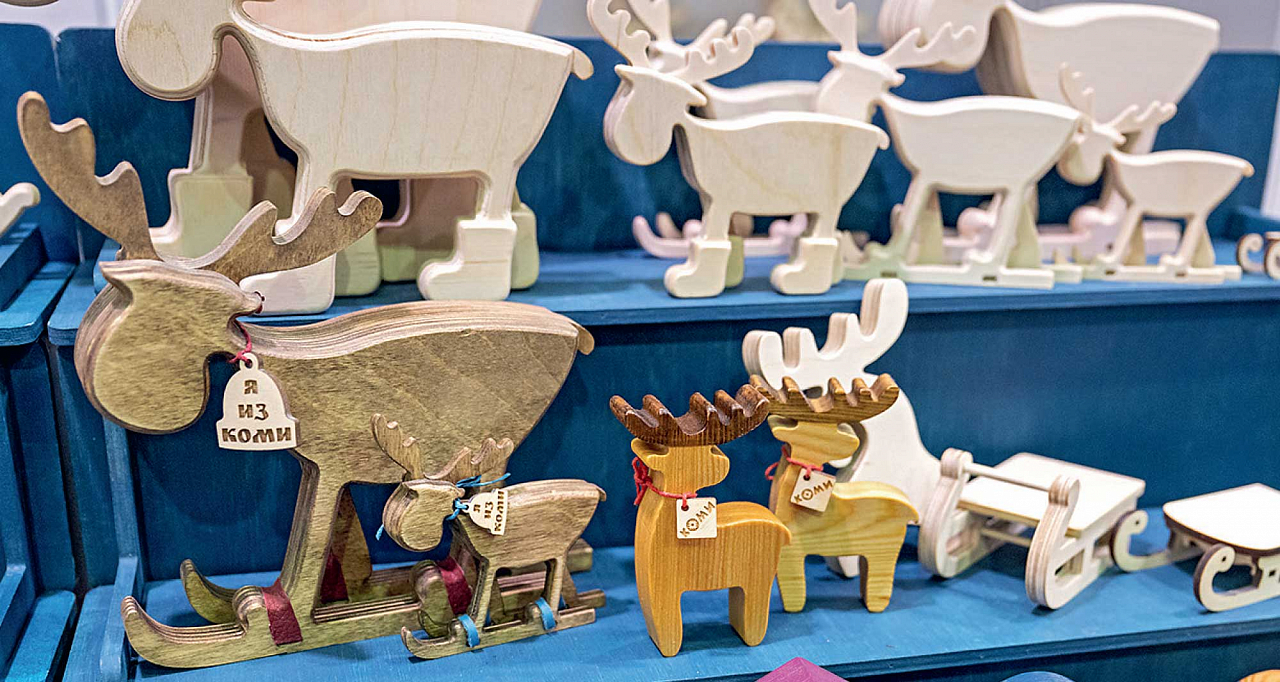 Регион славится своими лесами, а народные мастера представляют изобилие сувениров из дерева. Пройти мимо подсвечников, елочных игрушек и статуэток из сосны и остаться без покупки сложно: изделия лаконичные, но яркие и оригинальные. Несколько семейных столярных мастерских из Сыктывкара объединяются в артель: одни режут, другие декорируют.