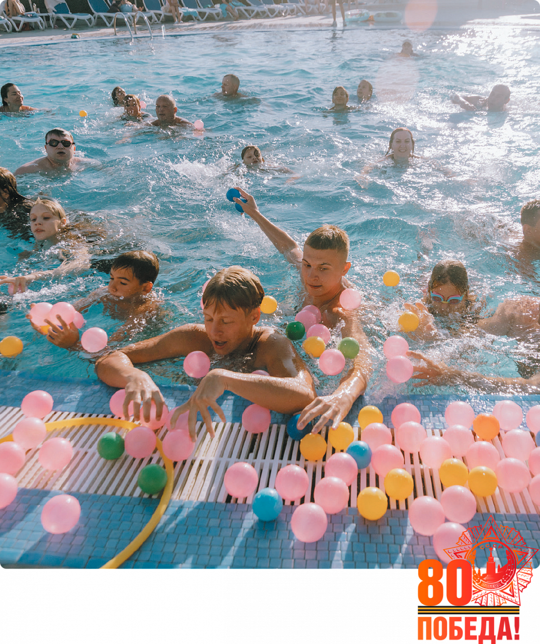 Тематические мероприятия, посвященные 80‑летию Победы в Великой Отечественной войне, были полны уважения и объединяли поколения: интерактивная акция «Бессмертный полк», мобильная фотовыставка «Новороссийск в годы ВОВ», мемориальная линейка, музыкально-поэтический вечер «Поклонимся великим тем годам», караоке-вечер «Песни Победы». В экскурсионной программе каждого заезда — посещение мемориального комплекса «Малая Земля» и крейсера «Михаил Кутузов» в городе-герое Новороссийске. Поход к памятнику «Героям-разведчикам» на мысе Малый Утриш и возложение венка, сделанного руками участников программы, к обелиску павших героев-разведчиков — новая традиция, рожденная в юбилейный год Победы в Великой Отечественной войне.