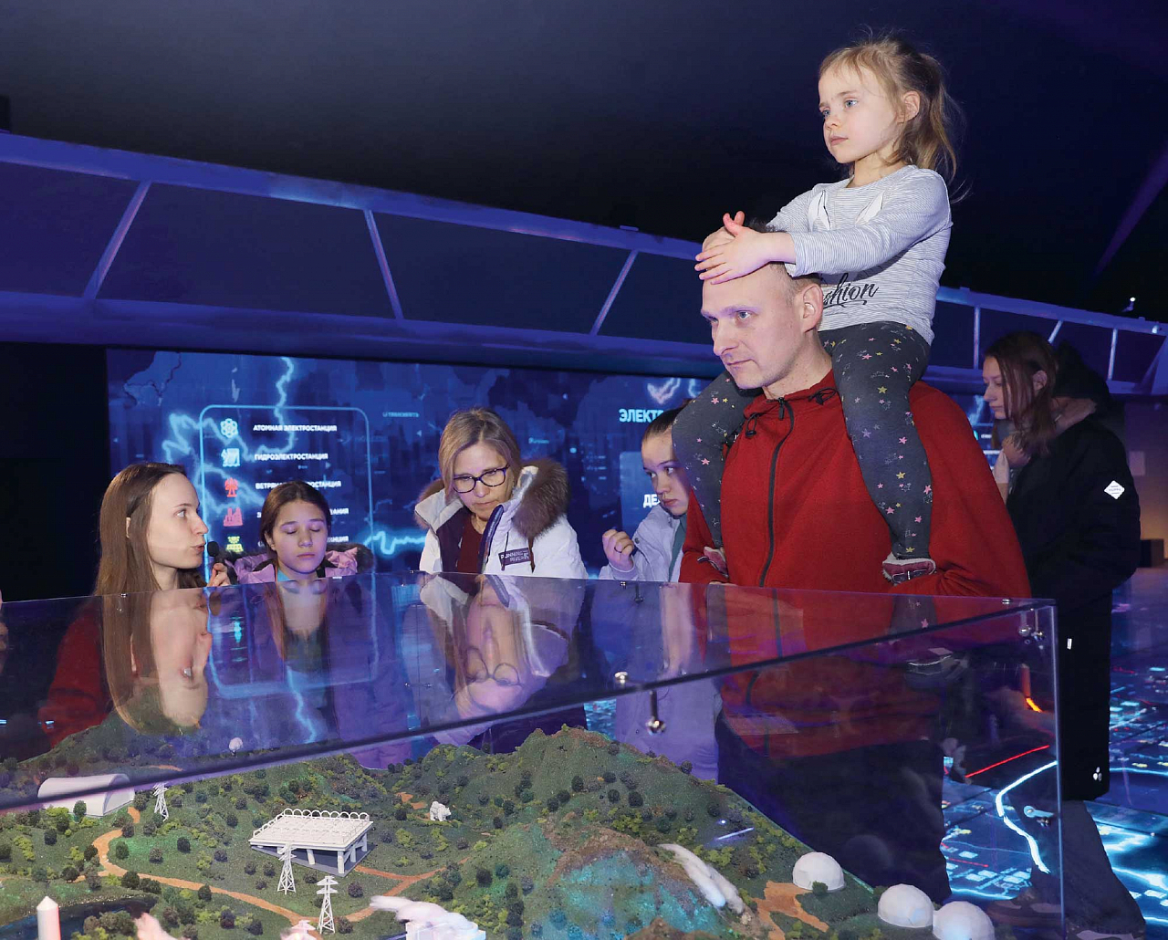 — Россия — величайшая энергетическая держава, — голос диктора в ходе экскурсии сопровождает эффектный видеоряд. — В недрах нашей страны огромный запас нефти, газа и угля. Вместе с энергией воды, ветра, солнца и атома они составляют основу энергетики нашей страны.