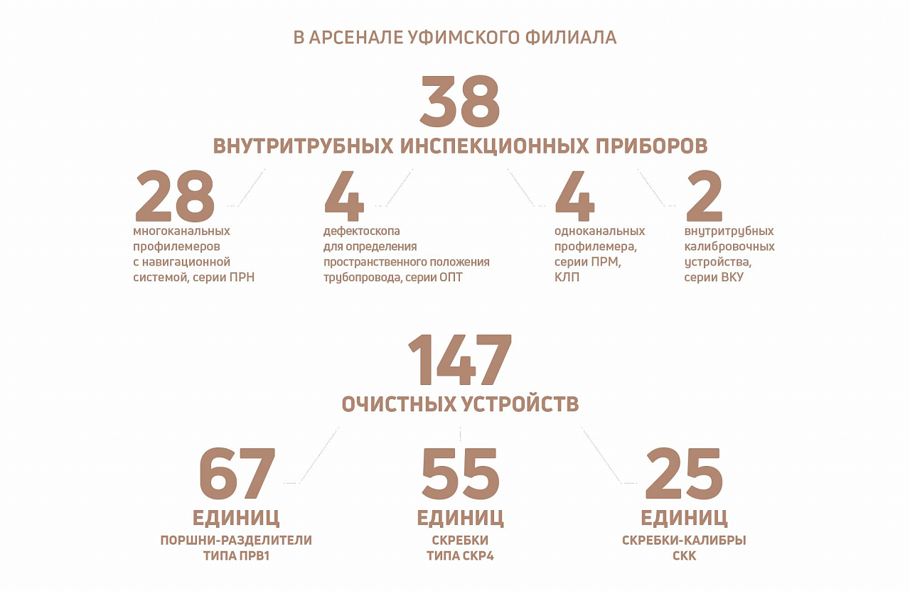 — Сегодня практически каждый ВИП в парке нашего филиала имеет на борту безинерциальную навигационную систему, которая позволяет не только определять величину радиуса изгиба трубопровода, но и строить карту пространственного положения трубопровода с определением географических координат, с учетом изменения высот, — говорит Ильдар Мухарямов. — Данная функция широко используется при проведении диагностических работ дефектоскопом серии ОПТ на трубопроводах восточного направления — ВСТО и ВСТО-2, которые проходят в сейсмоопасных регионах, на нефтепроводах Куюмба — Тайшет и Заполярье — Пурпе, у которых есть участки, проходящие по труднопроходимым заболоченным местам. В Заполярье, в местности где есть вечная мерзлота, ОПТ применяется для мониторинга возможных перемещений положения трубопровода. Объем работ отделения профилеметрии Уфимского филиала составляет в среднем 550 участков в год — 35 тыс. км. За 30 лет Уфимский филиал обследовал профилемерами 794 283 км трубопроводов.