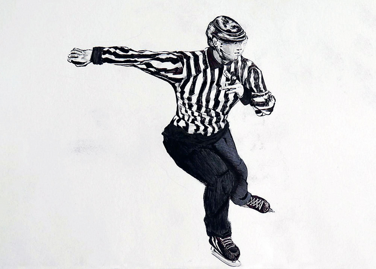 — В хоккее много движения, динамики, а это отличная тренировка для изображения фигур в неравновесном положении: в состоянии полета, прыжка, рывка, — поясняет он. — Так что совмещаю приятное с полезным и наслаждаюсь хоккеем. Особенно когда играют ребята, которых знаешь.
