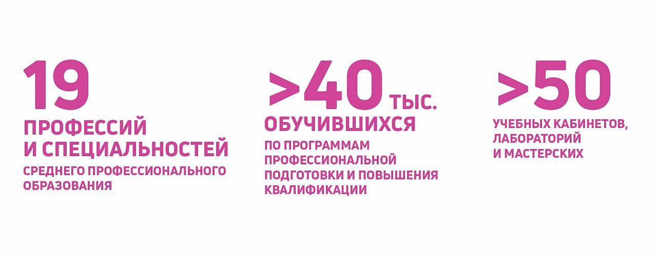 Сейчас учебное заведение готовит работников по 9 профессиям и 10 специальностям, реализует более 100 программ профессионального обучения.