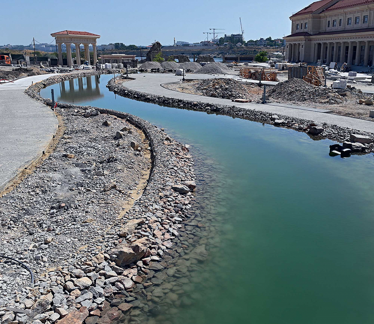 Так Новый Херсонес получил собственный водоем, который, помимо эстетической ценности, позволяет парку быть полностью автономным в плане водоснабжения и не создавать нагрузки на городские сети, что очень важно в засушливом климате Крыма.