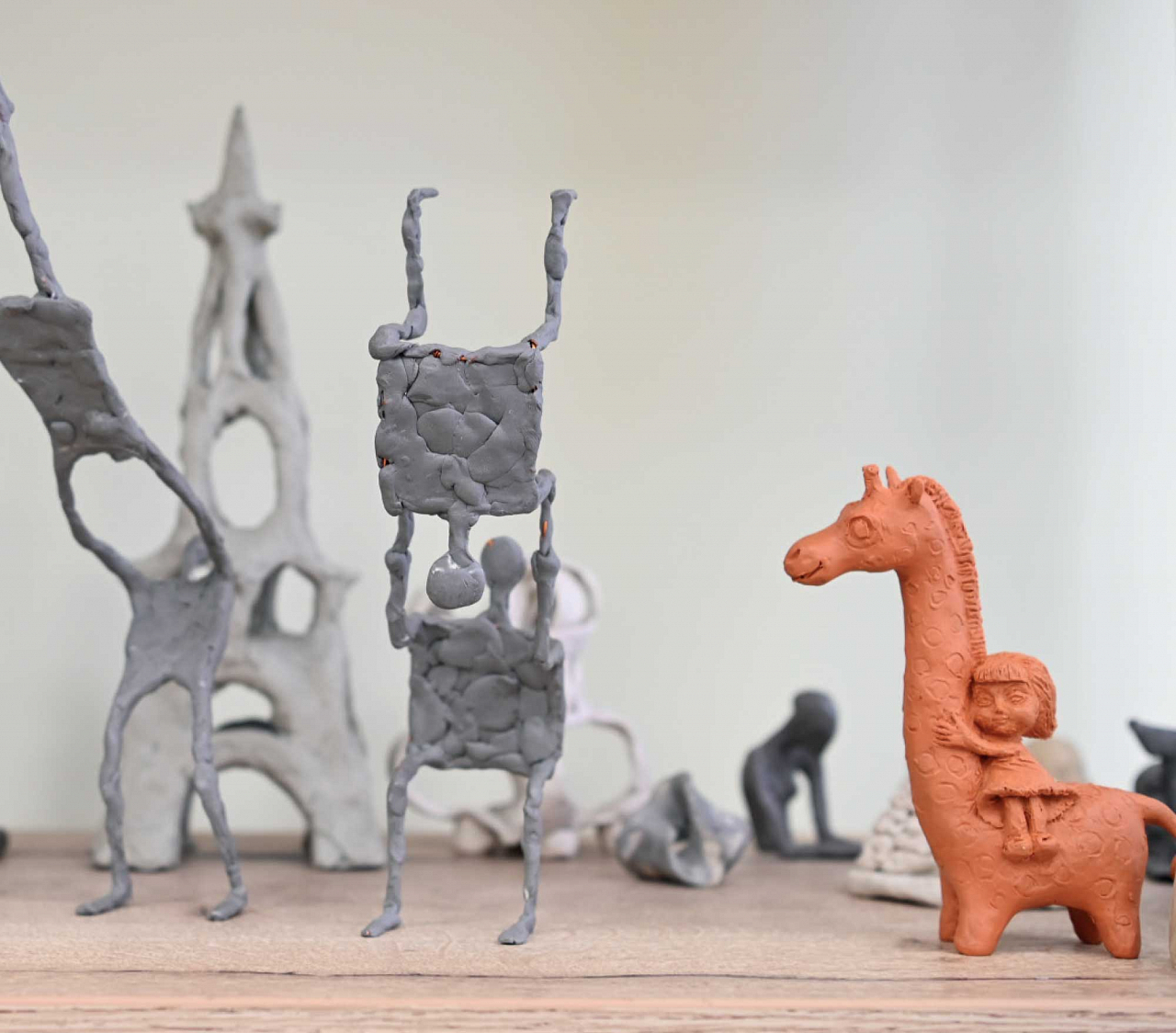 На столе — керамика, многие кувшины и вазы сохранились почти идеально. Есть части надгробия с барельефами, терракотовые фигурки, театральная маска.