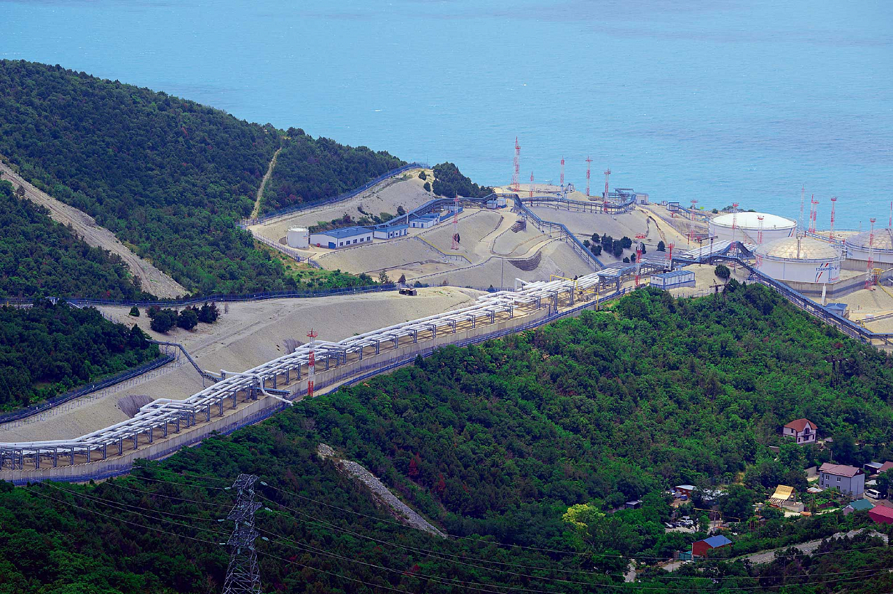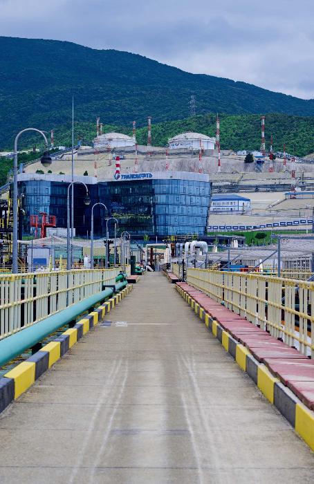 На высоте почти 300 м над уровнем моря расположена промышленная площадка «Грушовая». Здесь находится один из крупнейших резервуарных парков в стране. По магистральным трубопроводам Тихорецк — Новороссийск-2 и 3, а также по трубопроводу Крымск — Грушовая сюда приходит нефть. Нефтепродукты поступают как по трубопроводу, так и по железной дороге — на эстакады, которые эксплуатирует АО «Транснефть — Терминал». Все это богатство аккумулируется в резервуарном парке по группам, а после формирования танкерных партий и подготовки паспортов качества отправляется, предварительно пройдя через узлы учета, расположенные на площадке «Шесхарис», на танкеры. Интересно, что углеводороды поступают на нижнюю площадку и на танкеры без всяких механических усилий — самотеком.