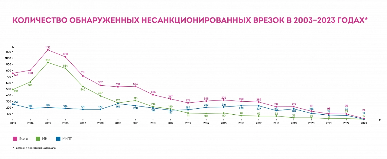 Кропотливая работа по борьбе с несанкционированными врезками и хищениями нефти и нефтепродуктов из трубопроводов приносит результаты. Количество врезок по сравнению с их пиковым значением в 2005 году сократилось в 12 раз.
