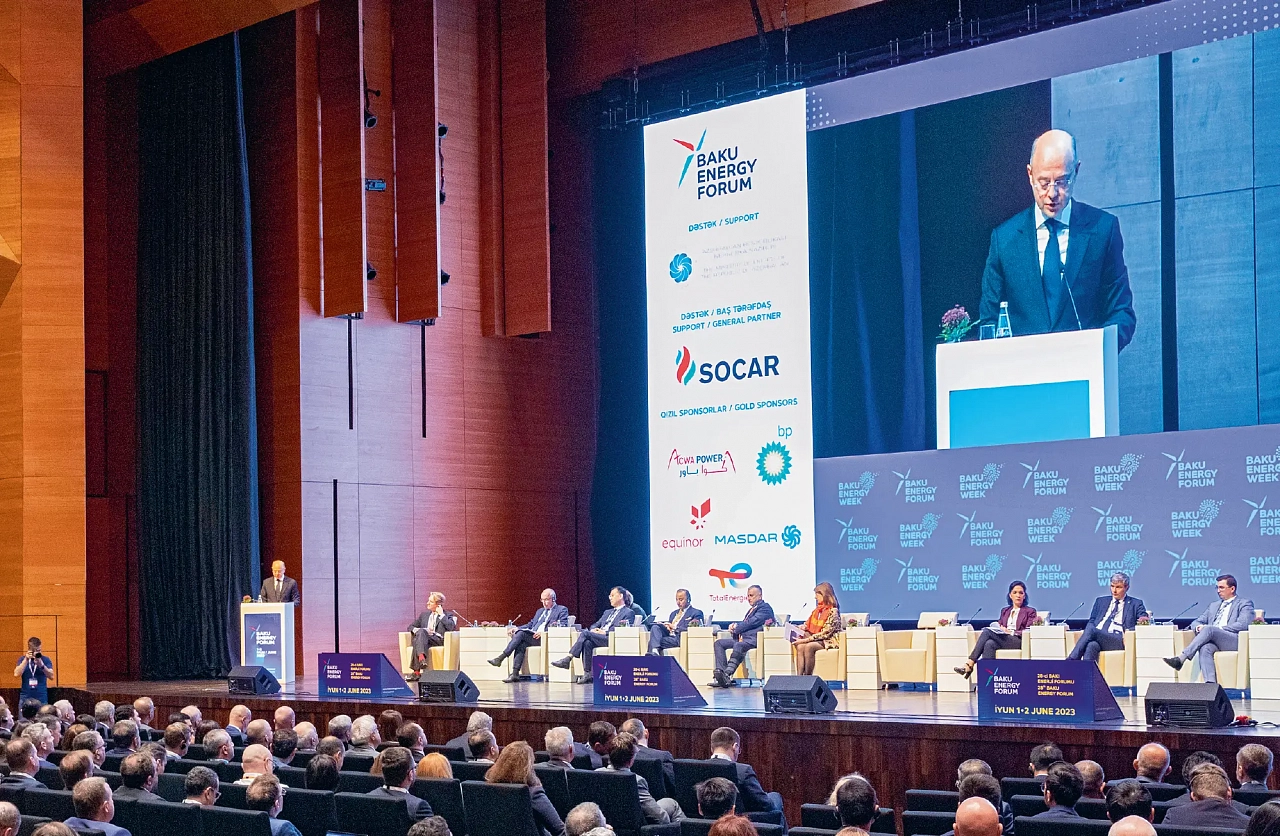 Параллельно с нефтегазовой выставкой прошел Бакинский энергетический форум. В первый день его работы длинные вереницы автомобилей с дипломатическими номерами выстроились у конгресс-центра. Министры и чиновники, представители нефтегазовых компаний, ученые собрались, чтобы обсудить перспективы развития мировой энергетики.Министр энергетики Азербайджана Парвиз Шахбазов сообщил, что газовые запасы страны оцениваются в 1,7 трлн м³.