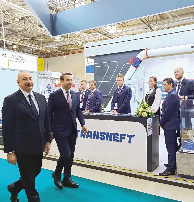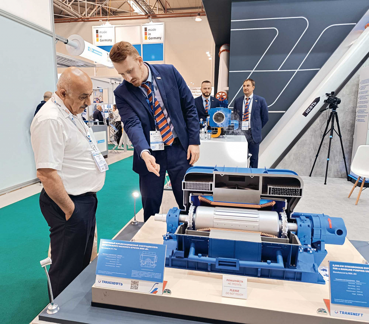 Одним из самых ярких стендов на бакинской выставке стала экспозиция «Транснефти». Компания представила макеты оборудования собственного производства: синхронного взрывозащищенного электродвигателя насосного агрегата, горелочного устройства, герметизирующей камеры шахтного типа для ремонта подводных переходов трубопроводов, комбинированного магнитно-ультразвукового дефектоскопа, измерительно-вычислительного комплекса, магистрального и подпорного насосов.