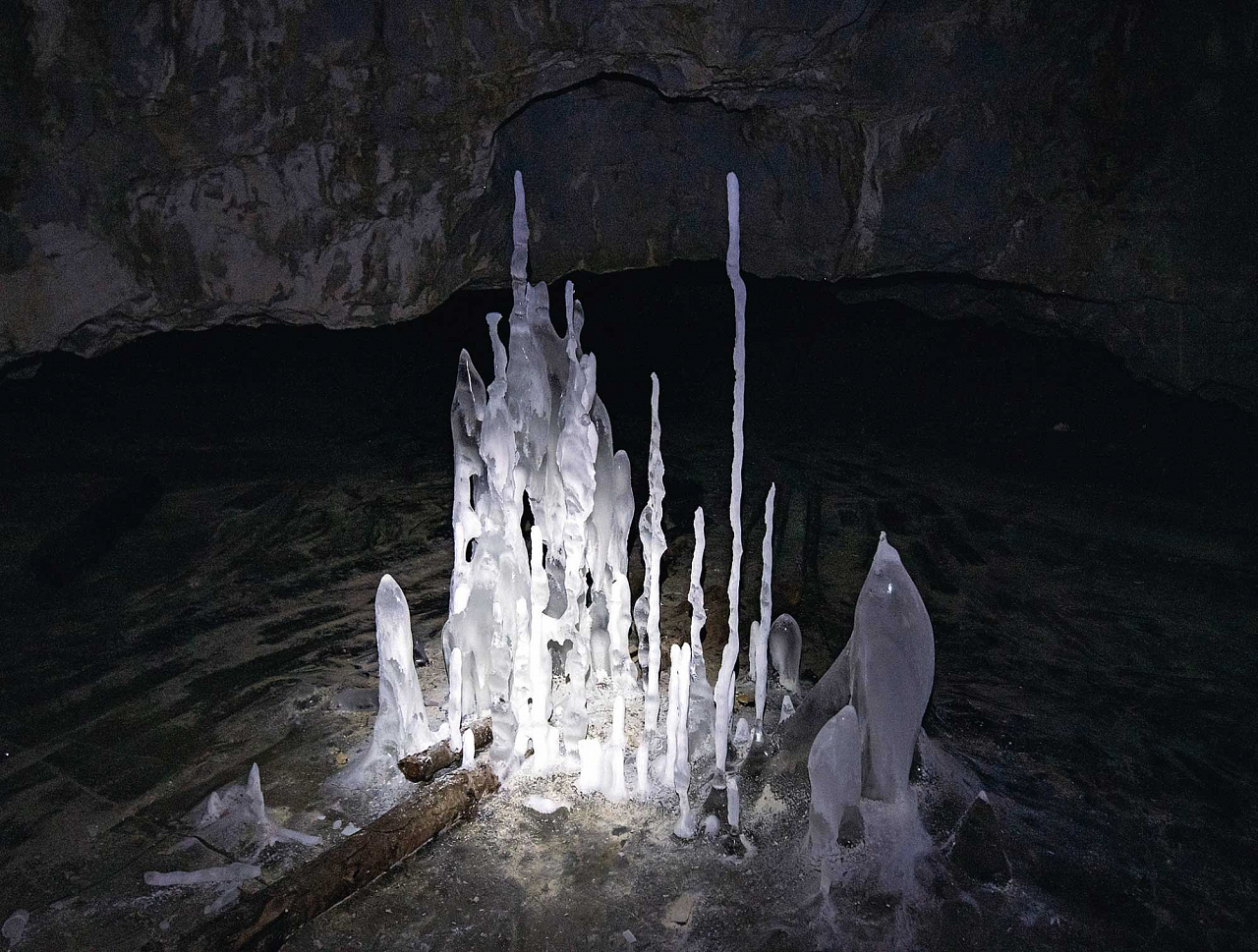 Мы увидели извилистые лабиринты, сталактиты и сталагмиты, живописные ледяные наросты. Войдя в пещеру, сразу же обнаруживаем целый комплекс ледяных сталагмитов — сосулек, растущих из пола, — расположенных по окружности. А над ними — ансамбль ледяных сталактитов. Удивительно, что вся эта красота каждый сезон обновляется. Летом ледяные наросты в первых залах тают, а осенью намерзают заново. Поэтому каждый сезон неповторим.