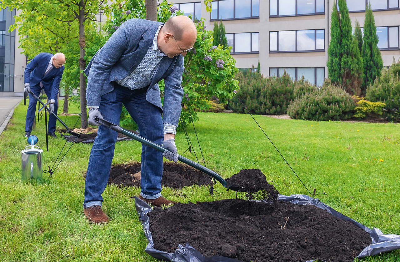 Субботник на ВДНХ. Волонтеры АО «Гипротрубопровод» высадили у павильона «Лесная промышленность» 15 сосен, 27 кустов можжевельника и два рододендрона. Многие работники института «Гипротрубопровод» принимают участие в экологических акциях регулярно, а некоторые — целыми семьями.