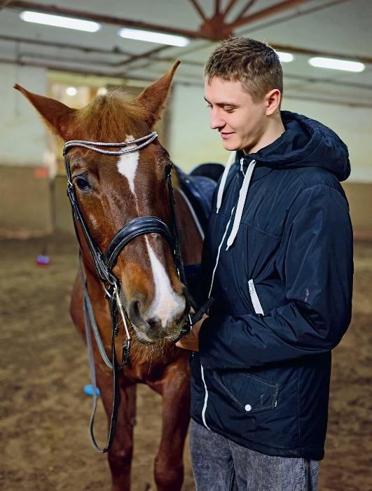 В 19 лет он ушел служить на СВО по контракту. На фронте получил ранение. Дальше — госпиталь, ампутация части ноги, тяжелое восстановление. Конным спортом занимается с сентября прошлого года — и это помимо скалолазания и волейбола сидя. Похожая история у 22‑летнего Романа Малышева.