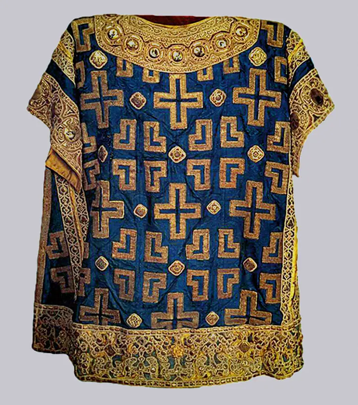 Этот единственный крестчатый саккос, дошедший до нашего времени, называют образом христианского мира Руси.