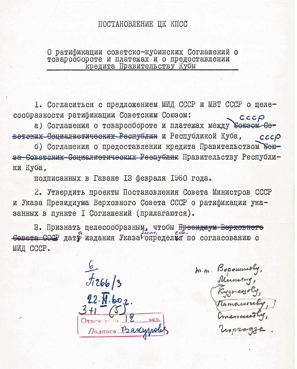 Тяжелейшие переговоры с кубинскими лидерами о признании необходимости вывода советских войск с территории острова длились около месяца. В январе 1963 года Никита Хрущев пригласил Фиделя Кастро в СССР с официальным визитом — чтобы закрепить дружбу навеки. Кубинский лидер прибыл в Мурманск в конце апреля и задержался в СССР больше чем на месяц. Он посетил первомайскую демонстрацию в Москве и побывал на черноморских курортах. Архивные фото свидетельствуют, что советские отдыхающие уже одеты по‑летнему, а Фидель — все еще в зимней одежде. Визит прошел очень успешно, отношения налажены, были подписаны новые соглашения, в том числе об экономическом сотрудничестве. Неприятное послевкусие в отношениях с Кубой было преодолено.
