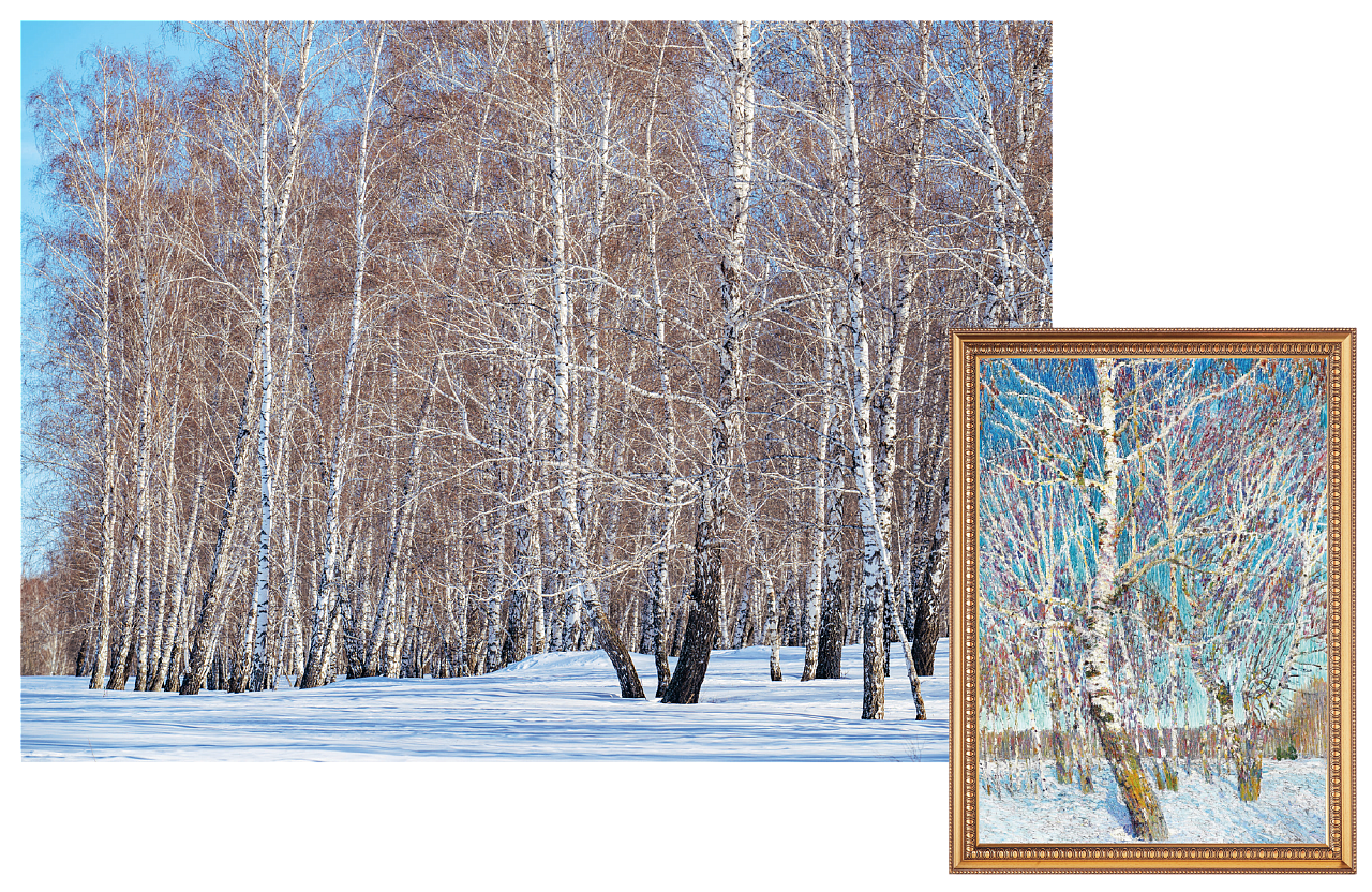 Совсем рядом гремит и сверкает трубопроводная стройка, а березовый лес, будто сошедший с полотна живописца, замер в ожидании первых весенних дней.