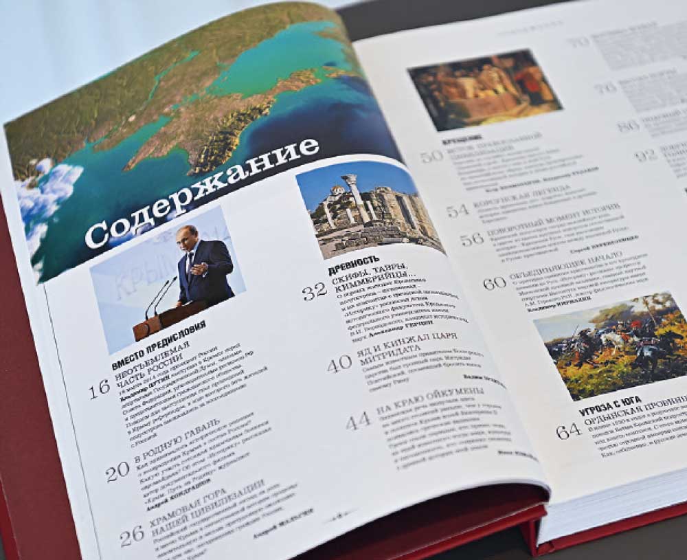 Более 450 страниц живой истории, красочные иллюстрации, документы, эксклюзивные интервью. Начиная с повествования о скифах и таврах, в книге «Крым. Страницы истории с древнейших времен до наших дней» даются ответы на вопросы современности и открываются захватывающие подробности жизни крымского полуострова на протяжении тысячелетий.