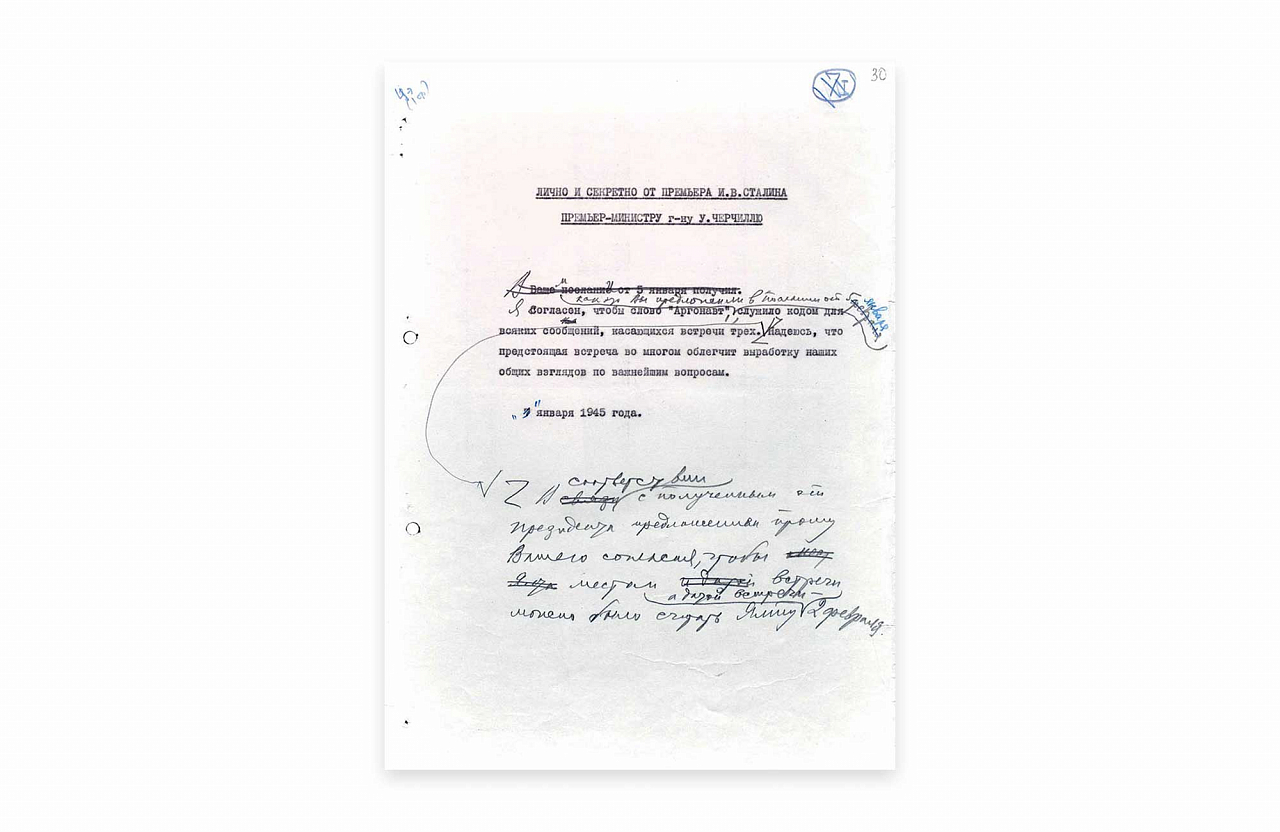Открывая заседание в качестве председателя Рузвельт отметил, что стороны «уже хорошо понимают друг друга и взаимопонимание между ними растет». «…Все хотят скорейшего окончания войны и прочного мира», — сказал американский президент и призвал «беседовать откровенно». А начать с «положения на Восточном фронте, где войска Красной армии столь успешно продвигаются вперед».