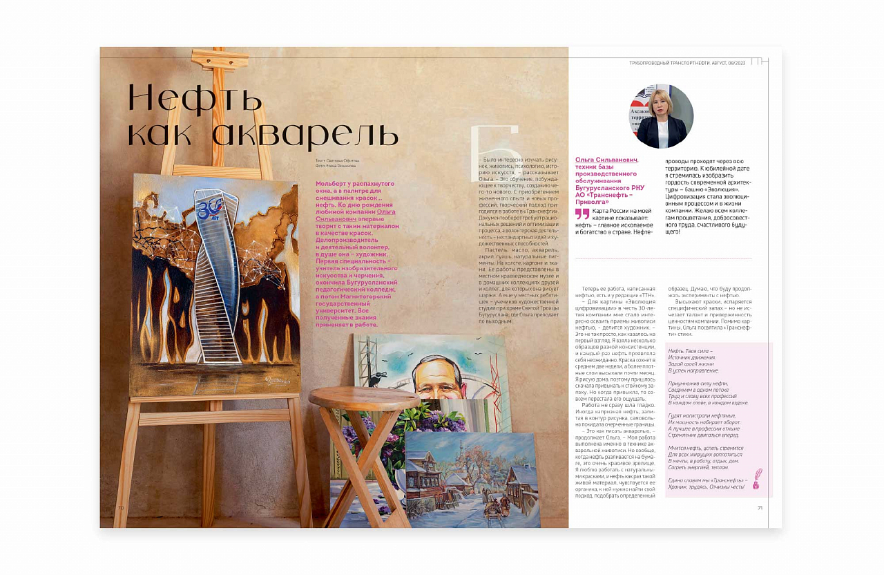 Ольга Сильванович долгие годы была техником базы производственного обслуживания Бугурусланского РНУ АО «Транснефть — Приволга». Любимая работа, стабильность, интересные увлечения, например живопись. По первому образованию Ольга — учитель изобразительного искусства и черчения.