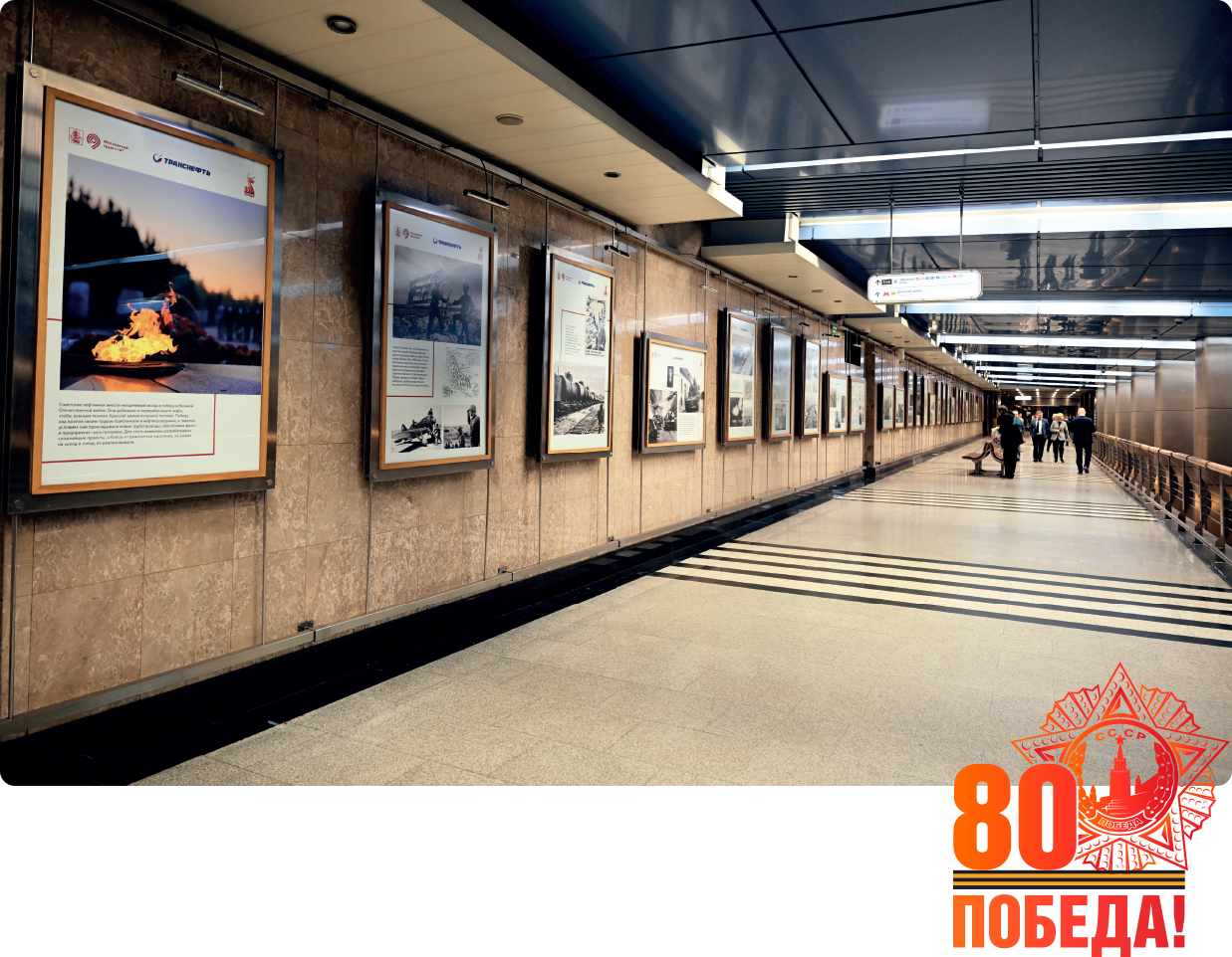 Отдельный блок экспозиции посвящен роли «Транснефти» в увековечивании памяти Великой Отечественной войны. На стендах представлены фотографии Ржевского мемориального комплекса Советскому солдату, в возведении которого финансово помогала компания, а также рассказывающие о работе участников поисковых отрядов и волонтеров.