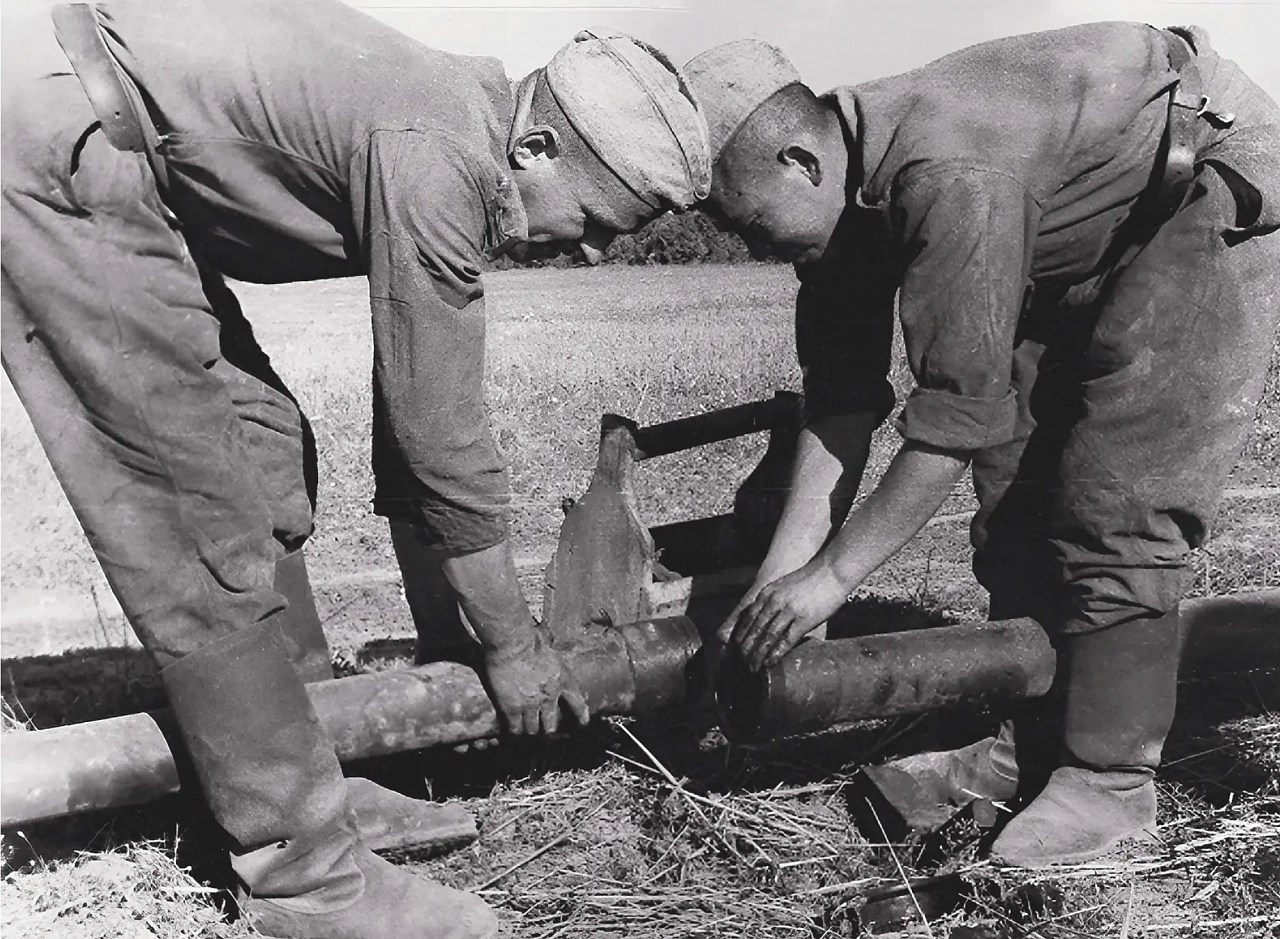 Первые сборно-разборные полевые трубопроводы, разработанные советскими инженерами, появились у Красной армии еще в 1937-м. В годы войны они чрезвычайно помогли воинским частям там, где снабжение армии горючим было нарушено из-за уничтоженной инфраструктуры и водных препятствий.Весной 1942 года 61‑я армия генерал-лейтенанта Маркиана Попова вела бои на Брянском фронте в районе Белева Тульской области. Танковая бригада осталась практически без горючего, а между войсками и снабженцами пролегала Ока. Через реку перебросили трубопровод диаметром 75 мм, который до этого был знаком военным лишь по чертежам. Для его подводной части строители применили резинотканевые рукава, соединенные металлическими муфтами. Действовать пришлось под обстрелами. Но риск оказался оправданным: трубопровод устоял, конструкция показала себя технически безупречной — горючее армия получила вовремя.