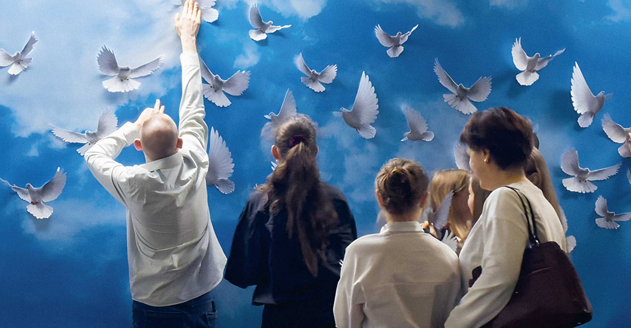 «Белые голуби» — спектакль про узников фашистских концлагерей. В главных ролях — дети. А в зале по инициативе нефтепроводчиков рядом с юными зрителями сидели те, чье детство прошло на фоне страшных дней Великой Отечественной — малолетние узники фашистских концлагерей, дети войны, труженики тыла. А еще — воины-афганцы.