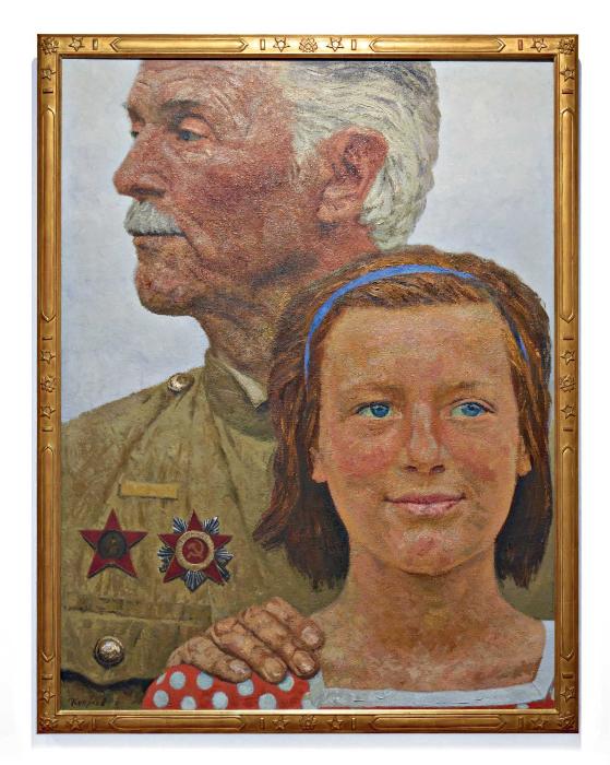 А дальше были «Огненные версты войны». Так называется первый раздел выставки. Все, чем жила страна, нашло отражение в искусстве. Солдат, уходящий на фронт, на картине Владимира Гаврилова «За родную землю». «Военный хлеб. Москва. 1941» Юрия Пименова, категорически отказавшегося уезжать в эвакуацию, хотя у именитого мастера была такая возможность. «Партизанская Мадонна» кисти Михаила Савицкого — художника, пережившего бои за Севастополь и ужасы концлагерей. «Встречая и провожая эшелоны» Игоря Обросова — посвящение матери, которая работала в госпитале.