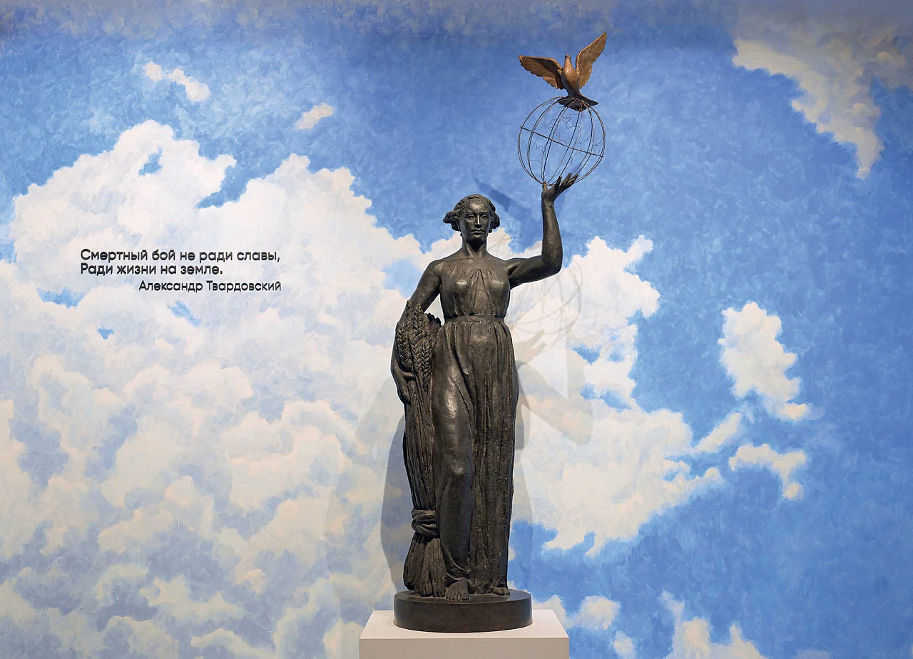 В этом разделе выставки и копия «Воина-освободителя» Евгения Вучетича, и плакат Леонида Голованова «Красной Армии — слава!», который в народе прозвали «Веселый солдат». Но рядом выставлены серия акварелей «Берлин. 1945» Александра Дейнеки, где видны трагические последствия войны. Наконец-то мир, но что ради него положено на алтарь?