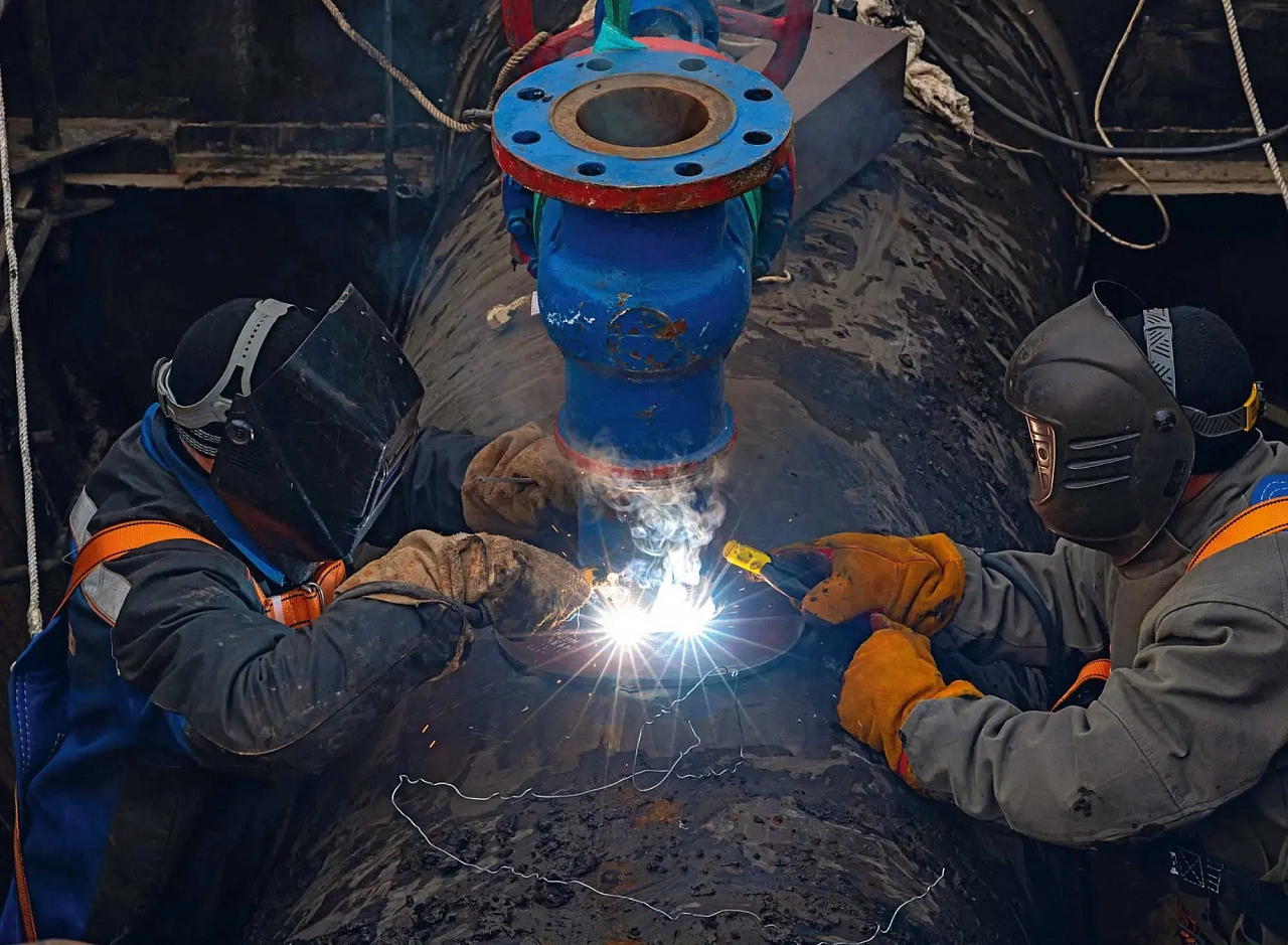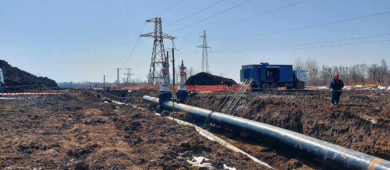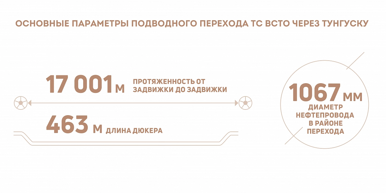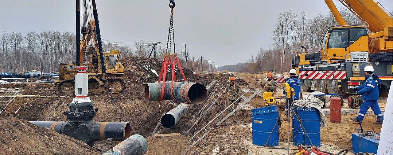 Строительно-монтажные работы на объекте начались в феврале прошлого года. Подводный переход через Тунгуску — объект особенный: его протяженность — более 17 км. Участок строительства проходит по обводненной болотистой местности, поэтому основные работы шли в зимний период 2022–2023 годов. Были проложены три дюкера: основной протяженностью 463 м и два через пойменные протоки длиной 175 и 166 м. Все три перехода строили траншейным способом. Еще два перехода через мелкие водотоки проходили без протаскивания — способом укладки с бровки.