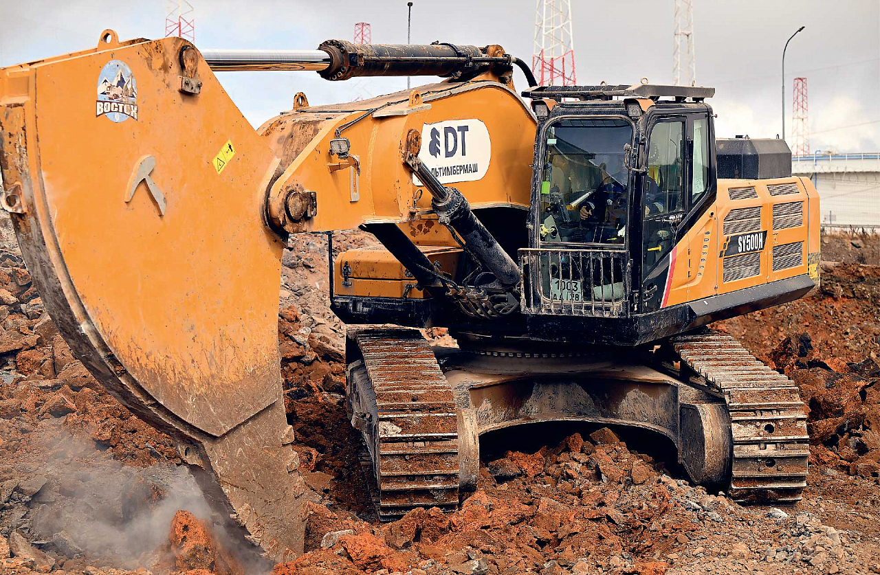 — С февраля 2024 года на площадке практически в круглосуточном режиме работало не менее 30 единиц техники, занятой исключительно на выемке грунта, — рассказывает первый заместитель генерального директора подрядной организации ООО «ТК «Восток» Динар Сатиков. — Это тяжелые экскаваторы, гидромолоты и рыхлители. Оборудование есть уникальное — это мегарыхлитель для скального грунта. Сам экскаватор весит 50 т, и к нему еще крепится 10‑тонный стальной клык. Надо сказать, что эта машина нам очень помогла ускорить работы.