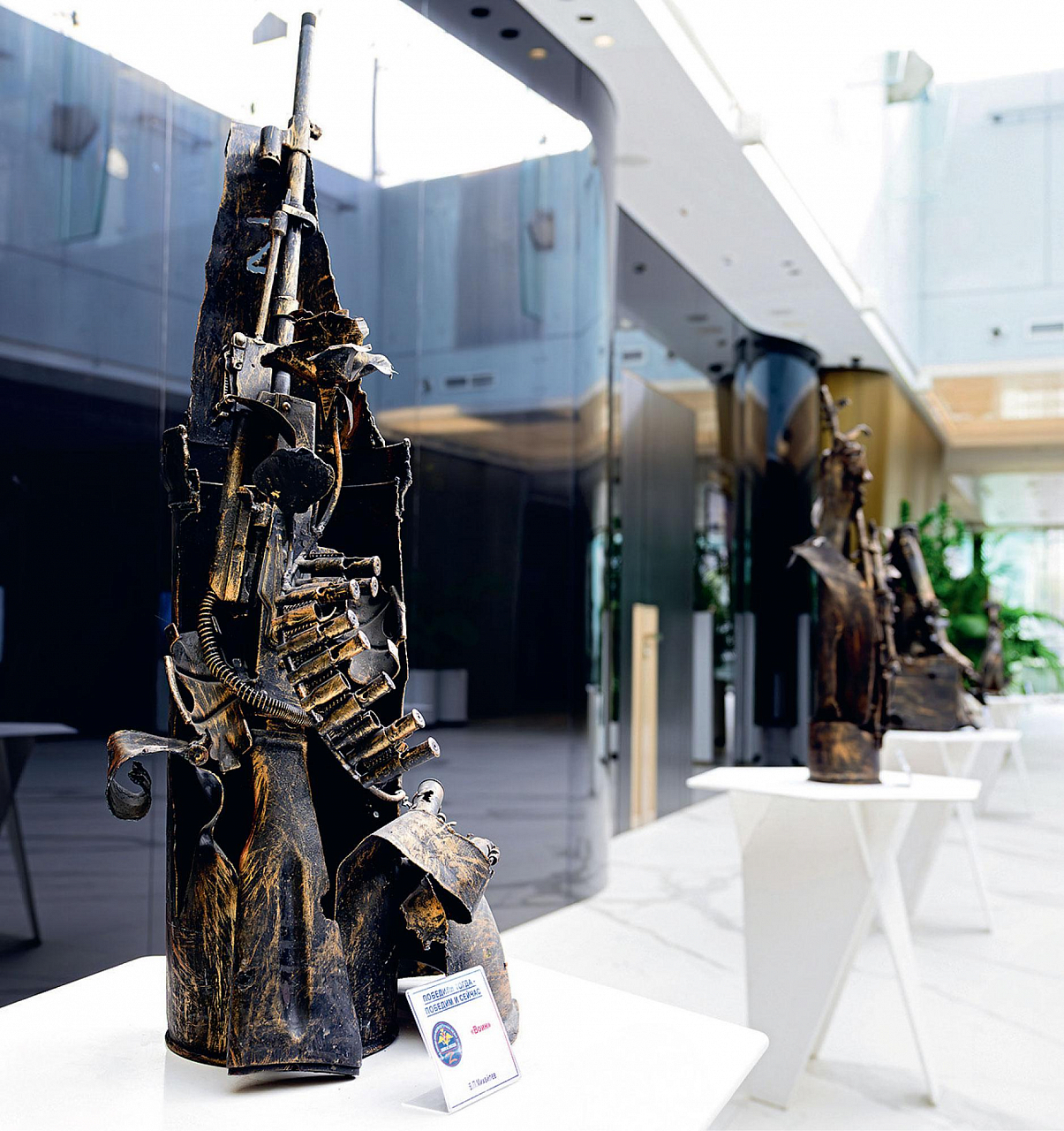— Сегодня мы вам представляем две выставки, собранные руками наших бойцов, — рассказал президент фонда помощи инвалидам и ветеранам боевых действий «Своих не бросаем» Дмитрий Воробьев. — Там нет ни одной посторонней детали. Это все собрано после тяжелых боев. И снаряды, и разбитое оружие. Как руководитель фонда, хочу сказать огромное спасибо вашей компании. Потому что в 2022 году она была одной из первых, кто откликнулся на наш призыв о помощи. И я видел то оборудование, которое «Транснефть» привозила в госпитали, — коляски, костыли, то, что так было необходимо.
