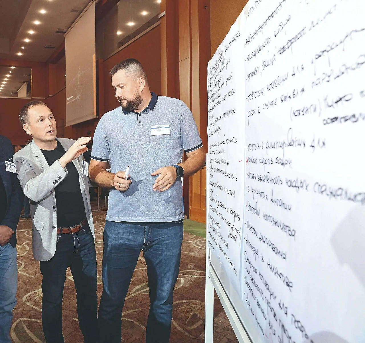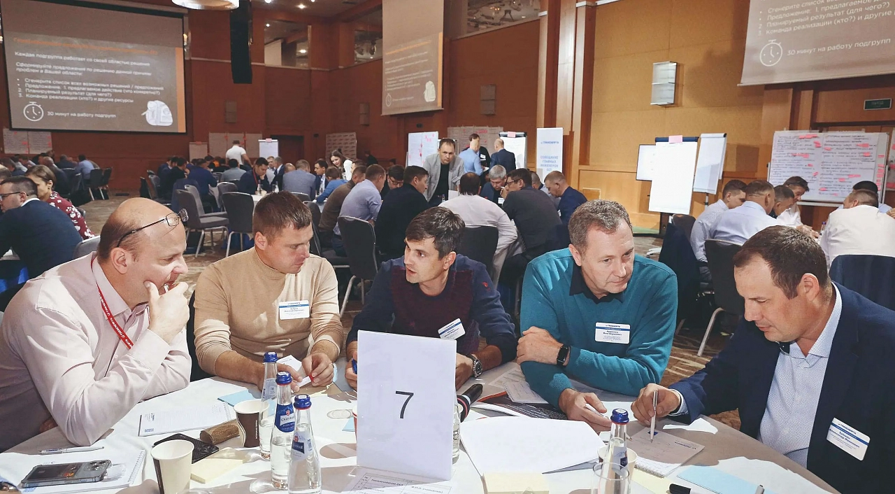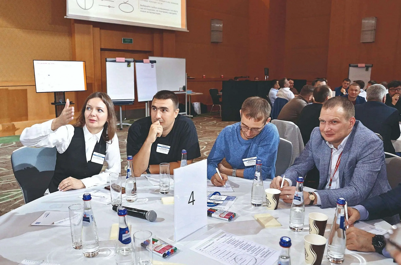 Командные формы обсуждения и поиска идей, подпитанные методическим компонентом и вниманием вне зависимости от статуса, уже в зале дали первые плоды. Выяснилось, что участников объединяют схожие задачи – от необходимости повышать мотивацию персонала и борьбы с раздутостью нормативной документации до преодоления барьеров в коммуникации.