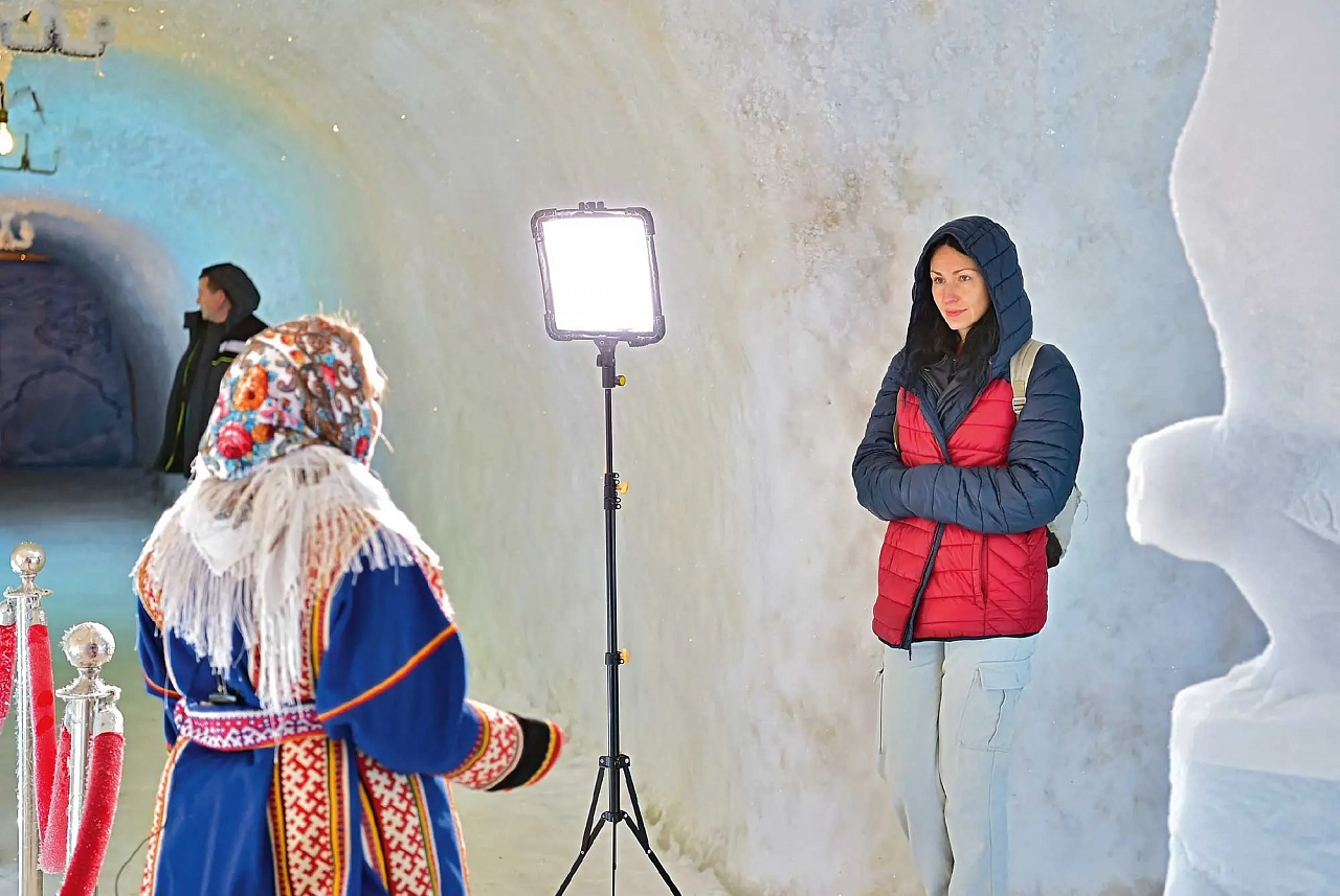 — Озера в тундре с примесью водорослей или песка, поэтому лед привезли издалека, — рассказывает экскурсовод Надежда Куди.