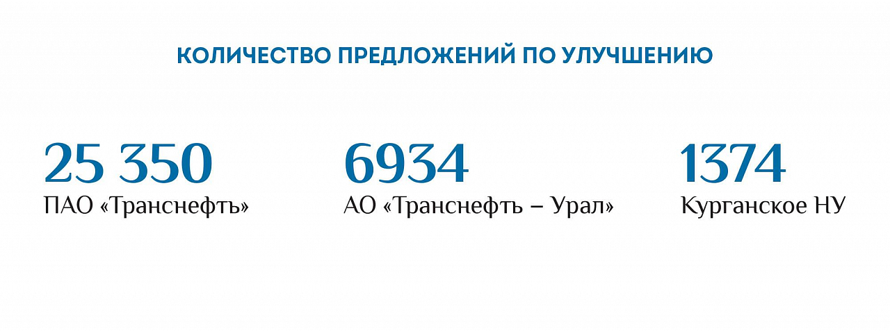 Одно из ППУ Курганского нефтепроводного управления (НУ) — сокращение количества знаков на линейной части магистрального трубопровода. Для обозначения одного узла запорной арматуры на трассе трубопровода использовалось 17 информационных и предупреждающих знаков. Ведущий инженер группы эксплуатации линейной части АО «Транснефть — Урал» Руслан Фаррухшин и начальник отдела эксплуатации Курганского НУ Антон Щекутьев предложили сократить количество табличек, оставив только стационарный створный знак для оси каждой нитки подводного перехода магистрального трубопровода на обоих берегах водоемов в 5–15 м от береговой линии. Проектный офис вынес решение: щиты — указатели оборудования линейной части трубопровода (задвижки, вантузы, технологические колодцы и другие) устанавливать на ограждениях узлов запорной арматуры и технологических колодцев — по одному на каждую единицу оборудования, створные знаки на подводных переходах через несудоходные реки устанавливать только на водоемах шириной в межень 75 м и более. ППУ уже тиражировано на уровне ПАО «Транснефть».