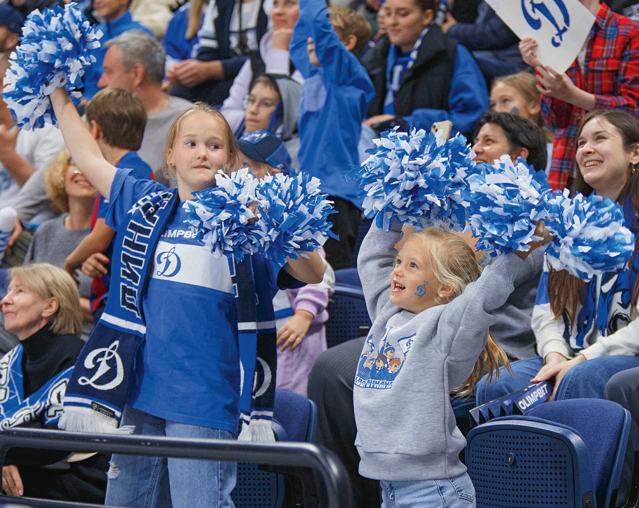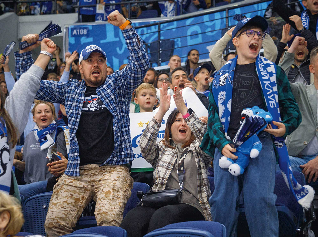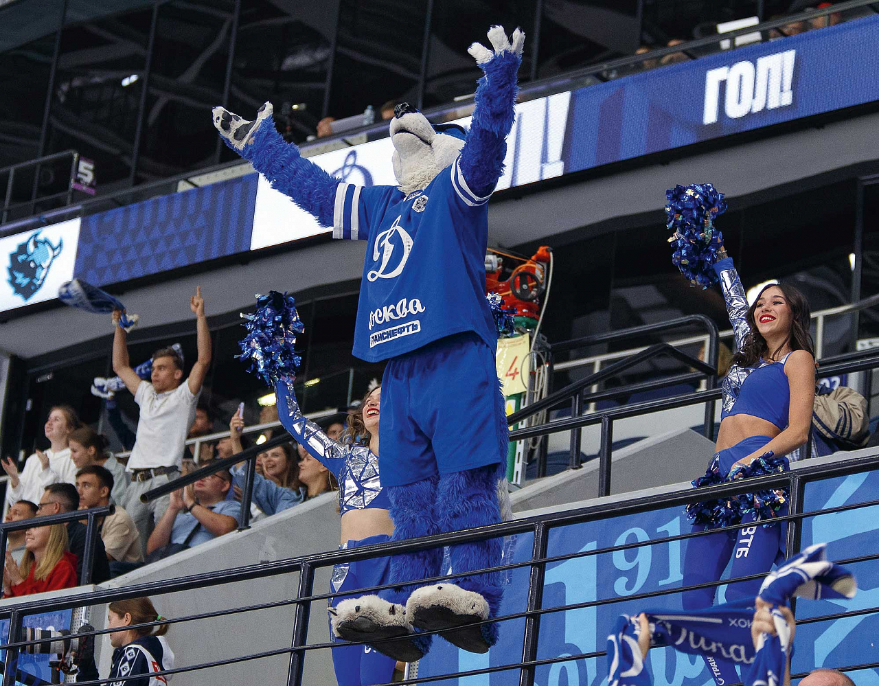 Домашние матчи − особая атмосфера. Динамовцы играют на своем поле, и болельщики чувствуют себя как дома − в интерьерах стадиона, где на экране видеокуба под куполом — символика любимой команды.