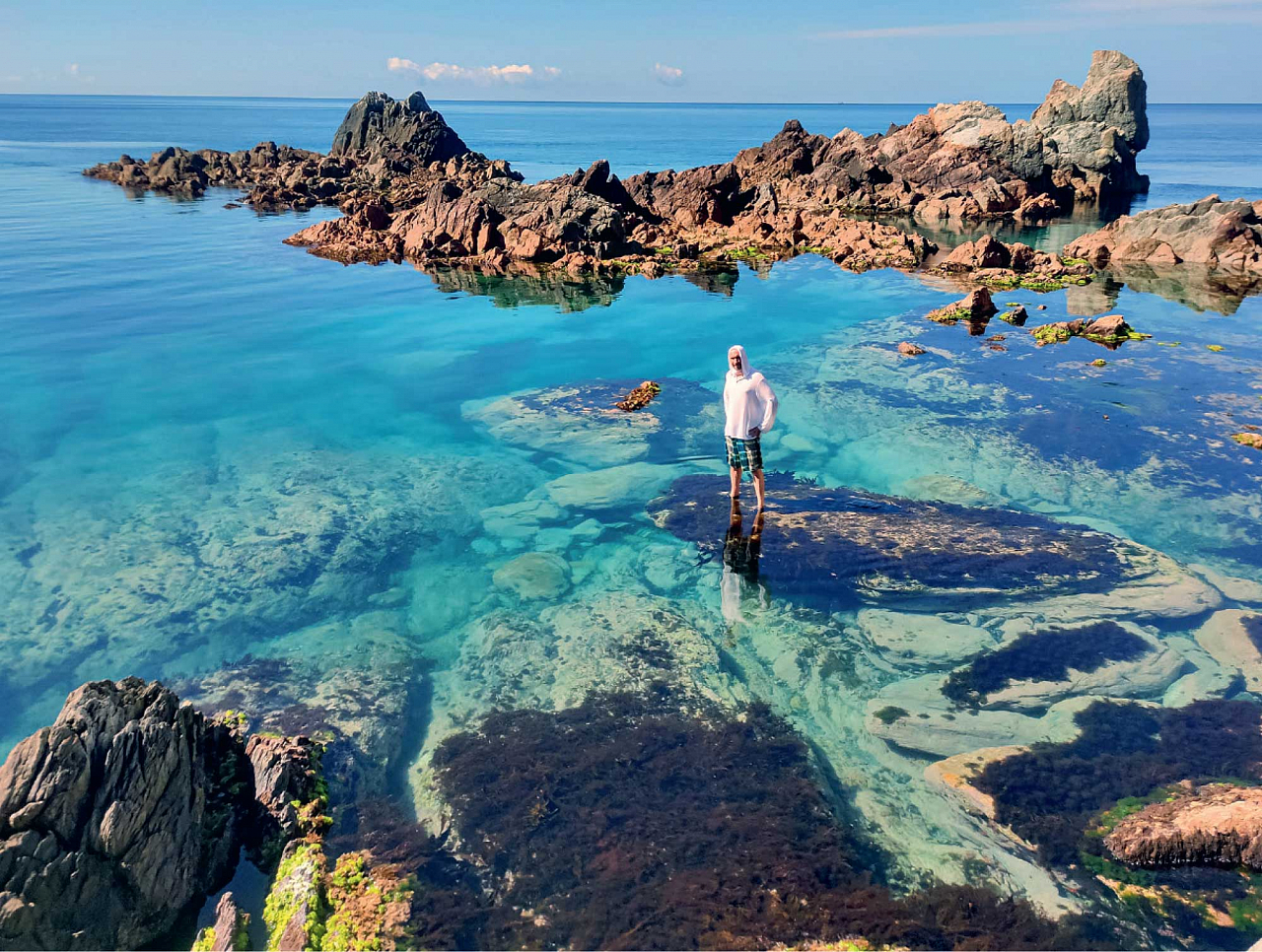 Взмах весла, еще один… Сапборд послушно режет морскую гладь. Полный штиль. Утреннее солнце пронизывает прозрачную воду, освещая на дне камни, усыпанные морскими звездами, ежами и космами ламинарии. Юркие стайки рыб снуют повсюду, иногда выпрыгивая из воды.