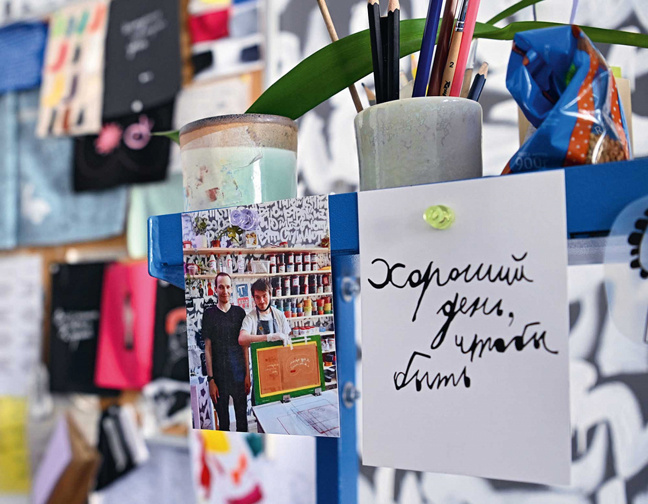 Сергея Тисника в школе ругали за плохой почерк. А в фонде им восхищаются. Созданный на основе его почерка шрифт используется при оформлении изделий, которые выпускаются в мастерских Центра «Антон тут рядом» на Невском. В них с сентября по июнь осваивают навыки профессий 48 студентов от 18 до 46 лет. Из‑под их рук выходят оригинальные блокноты, сумки, вазы, менажницы. Дизайн разрабатывается совместно с мастерами и профессиональными художниками. Потом эти работы продаются во многих магазинах, заказываются компаниями. В канун Нового года благотворительная ярмарка впервые прошла в центральном офисе ООО «Транснефть — Балтика» в Санкт-Петербурге.