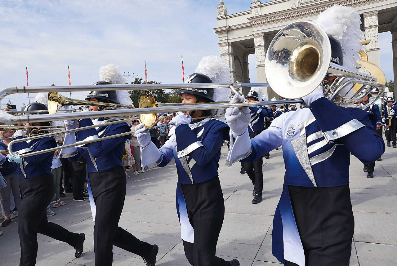 Подтянутые, торжественные, яркие и звонкие — на концерте-приветствии на ВДНХ оркестры издалека заявляют о себе. Зритель — почетная часть дефиле. Разводящий отдает команды, импровизированный народный круг расступается перед музыкантами. Герои фестиваля — рядом, на расстоянии вытянутой руки.