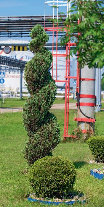 Несколько растений он высадил и на станции: скальный голубой можжевельник, шаровидные и западные туи, аккуратно подстриженные в виде спирали. Подстригать кустарник несложно, говорит садовод, но это длительный процесс — нужно несколько лет, чтобы добиться идеальной формы. На вопрос, что же самое приятное в таком творчестве — процесс возделывания или конечный результат трудов, Александр отвечает: «Взгляду нужно остановиться на чем-то прекрасном».