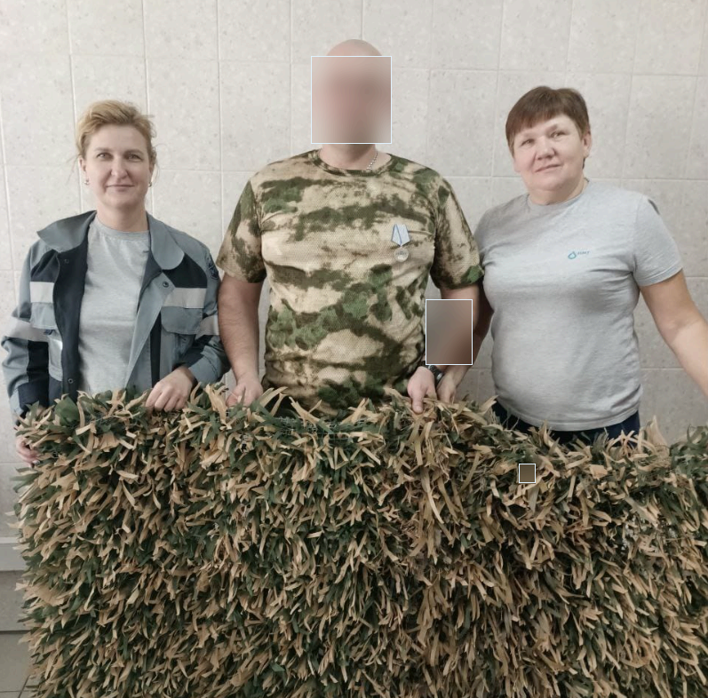 Постепенно появились и заказы – Елена Николаевна и Елена Леонидовна сплели несколько маскировочных плащей по просьбе коллеги из НМТ - электромонтёра по ремонту и обслуживанию электрооборудования, который сейчас в зоне СВО и имеет медаль «За отвагу». Материал для плетения помог приобрести мастер участка ремонта и обслуживания энергетического оборудования Виктор Безносов. Елены передали сети коллеги, когда он был в отпуске и заглянул к коллегам повидаться.