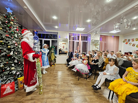 К приезду дорогих гостей из ООО «Приморский торговый порт» и подхвативших инициативу коллег ООО «Союзфлот порт» в ресурсном центре было организовано новогоднее представление: ребята разыграли спектакль, Дед Мороз со Снегурочкой зазывали всех в хоровод вокруг ёлки. Действо было настолько зажигательным, что приглашенные гости не могли не пуститься в пляс вместе с малышами и подростками.